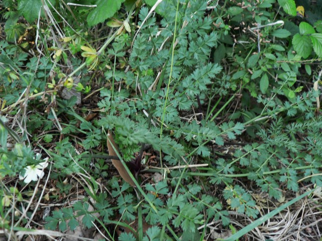 10)Orobancacea in osservazione davanti il piccolo spazio di campo che si apre davanti all’indicazione di S.Anna. Cresciute in gran numero altre piante di questa specie, in attesa di fioritura.