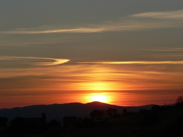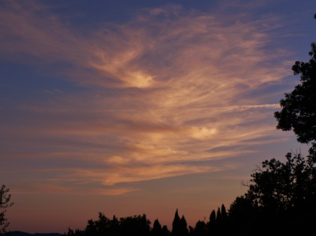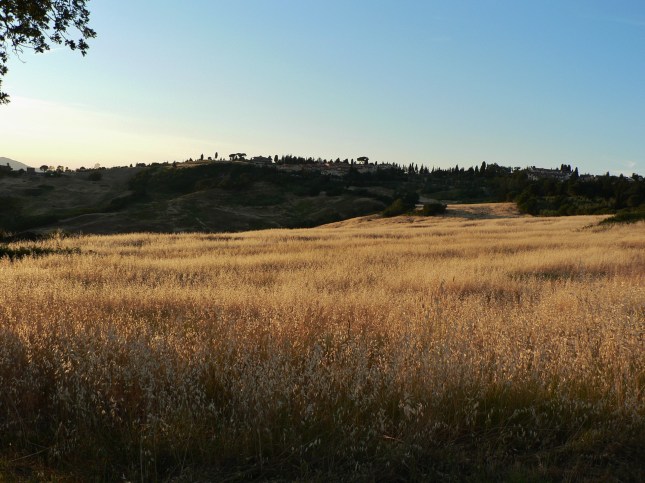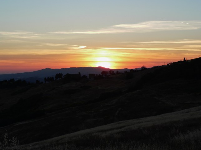Ormai sono trascorsi due cicli completi (due anni) di mappatura botanica a scansione almeno mensile del nostro percorso, a nostro avviso sufficienti per un eventuale confronto con un’analogo lavoro che potremmo svolgere fra qualche anno, per cercare, per es., indizi di un riflesso possibile dell’attuale iperbolico cambiamento climatico, magari con l’apparire a sorpresa di qualche pianticella selvatica nuova e rilevante. Cessiamo così il nostro attuale lavoro con questo settimo post. Con l’occasione Sofia ci ha mandato una serie di belle foto di scorci di visuale al tramonto che si sono potuti godere durante le passeggiate nel corso di questo giugno 2017 assolato. Chiuderemo con le foto, sempre di Sofia, di scorci di paesaggio visibili da punti strategici del nostro percorso.