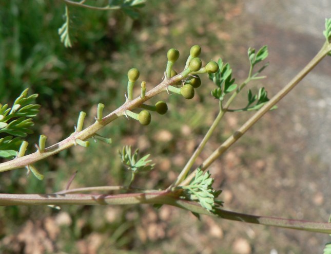 - Vicinissima alla Borsa _pastore ci sono dei cespugli di Fumaria…….. (Credo officinalis). Sono visibili anche i suoi piccoli frutti ancora verdi.