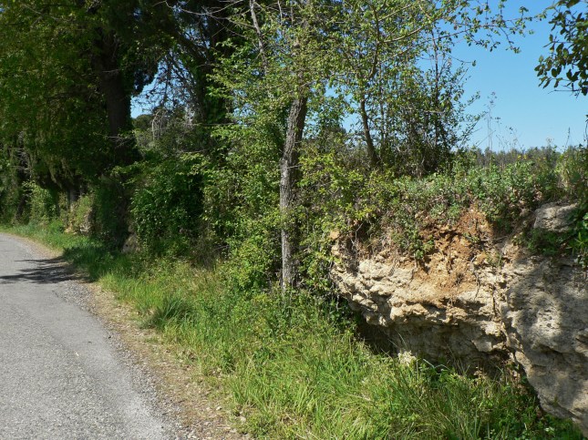 Oggi 21 Maggio 2017 ho notato nel percorso la presunta Apiacea (Ombellifera) Oenanthe pimpinelloides (finocchio acquatico), a intervalli, davanti all’argine della proprietà S. Anna, partendo dalla pietra di insegna, però a destra della strada (venendo da Pomarance), fino a vedere il vecchio arato sopra strada. Alcune piantine si notano anche a destra davanti alla proprietà S. Domenico; in ambiente più arido, le foglie della rosetta a superficie maggiore sono seccate.
