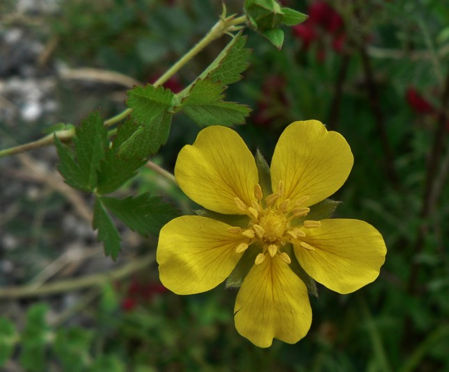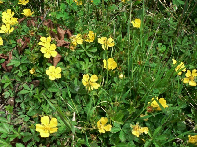4) Potentilla reptans . Le foto sono relative alle piantine vicino al deposito del letame, anche se la specie è presente un po’ ovunque su tutto il percorso