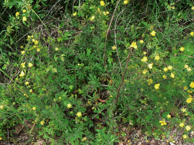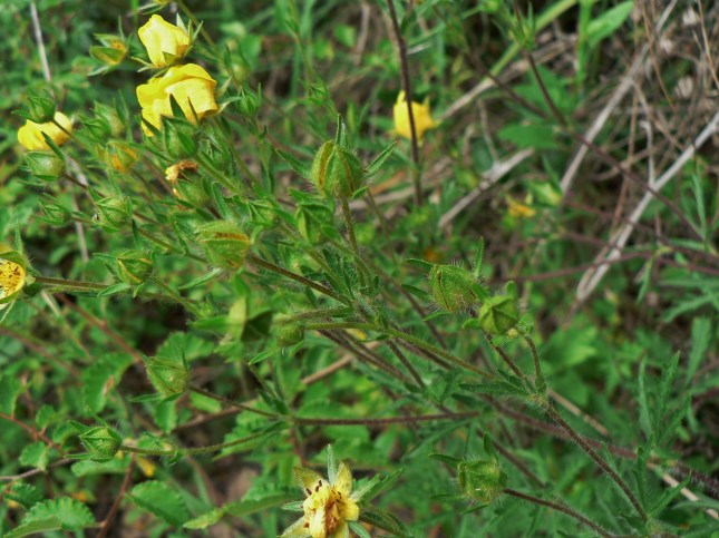 5) Potentilla hirta. Questa specie invece è presente in numerosi esemplari al margine della strada sul lato dx della discesa del Mirto, dopo l’Alalterno