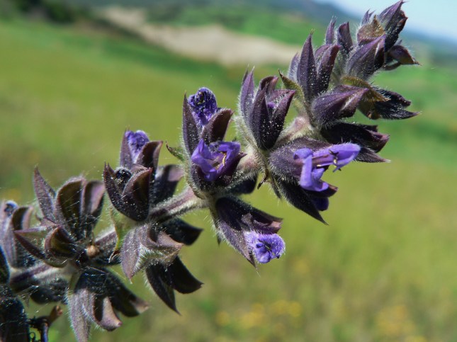 - Quasi davanti al pelago, sta fiorendo la Salvia verbenaca, sempre sul ciglio dx della strada.
