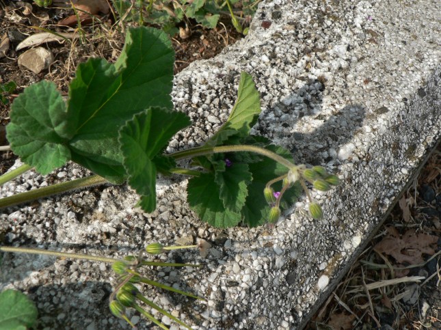 - Erodium malacoides……o forse alnifolium. Questa pianta è visibile all’inizio della strada, nell’angolo dx dell’incrocio Vicinale S. Anna e Via Filosofi.