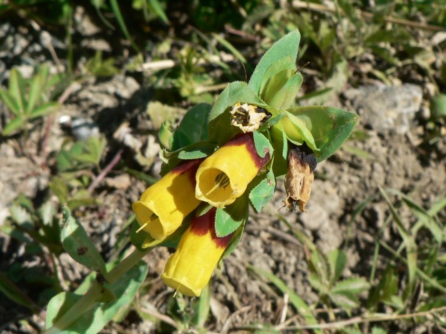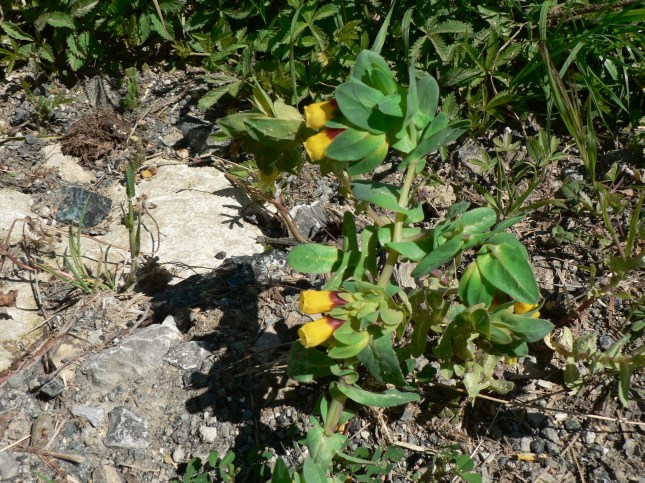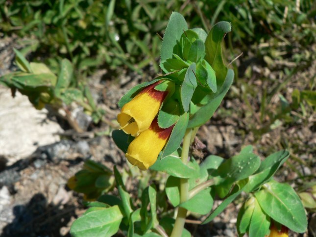 - Anche quest’anno è ancora presente l’Erba vajola (Cerinthe major), sul lato sx della strada, quasi vicino all’asfalto, in corrispondenza della discarica di letame. La pianta è piccolissima, ma già mostra la sua bella fioritura.