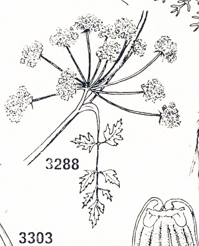 Lo Schema della piantina ‘Finocchio acquatico’ , è riportato sotto; l’aggettivo ‘acquatico’, forse ci indica che la piantina potrebbe essere presente, nel nostro percorso, in particolare per es., dove il contatto fra la placca di calcare detritico conchigliare di basso spessore ed il conglomerato a cemento argilloso sottostante, incontra la topografia; lì il terreno è certamente più umido.