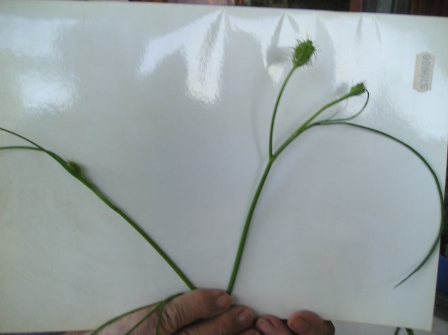 5) Knautia o Scabiosa??? La differenza tra le due specie talvolta è impercettibile. Con probabilità la piantina in osservazione potrebbe essere una Scabiosa, in quanto la corolla sembra si apra in 5 denti, mentre nell’altra specie si divide in 4. (Foto lato sx, poco prima di San Domenico)