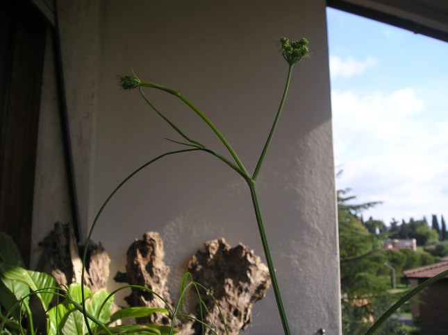 Foto delle ombrellette fruttifere dell’Apiacea sotto controllo in vaso