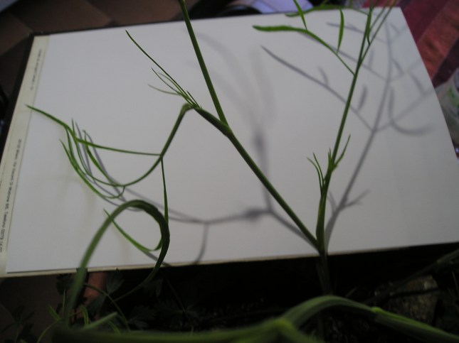 - Credo che saper riconoscere con certezza una Apiacea, non sia proprio così semplice… Ho notato che la nostra piantina ‘ignota’ ostenta le sue foglioline basali in diverse varianti e per la maggior parte dei casi cresce prevalentemente al margine della fossetta della strada. Stropicciando le sue foglie con le dita emette un odore che ricorda quello del finocchio o del sedano. Naturalmente per la sua identificazione la terremo in osservazione fino alla fioritura, fino a controllarne i semi. Per ora gli azzardi di ipotesi potrebbero suggerire una certa rassomiglianza con l’Apiacea: ‘Oeante pimpinelloide’=finocchio acquatico. Vicino alla nostra piantina ignota, ho fotografato anche quella di un finocchio, proprio per poterla confrontare con un’altra Apiacea.