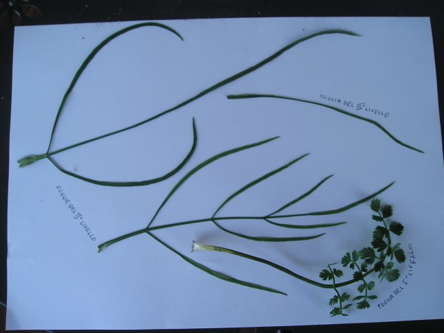 Errata corrige: nel testo le foglie del 1° livello sono considerate di livello zero (rosetta di base); quelle del secondo nella foto precedente, sono considerate del terzo livello; mentre le foglie del secondo livello sono quelle di una foto precedente siglata “FOTO DI REFERIMENTO DEL SECONDO LIVELLO”; per cui la foto segnata come del terzo livello è in effetti del quarto. Quando avrò tempo riparerò e proporrò anche uno schema della nostra piantina sotto esperimento.