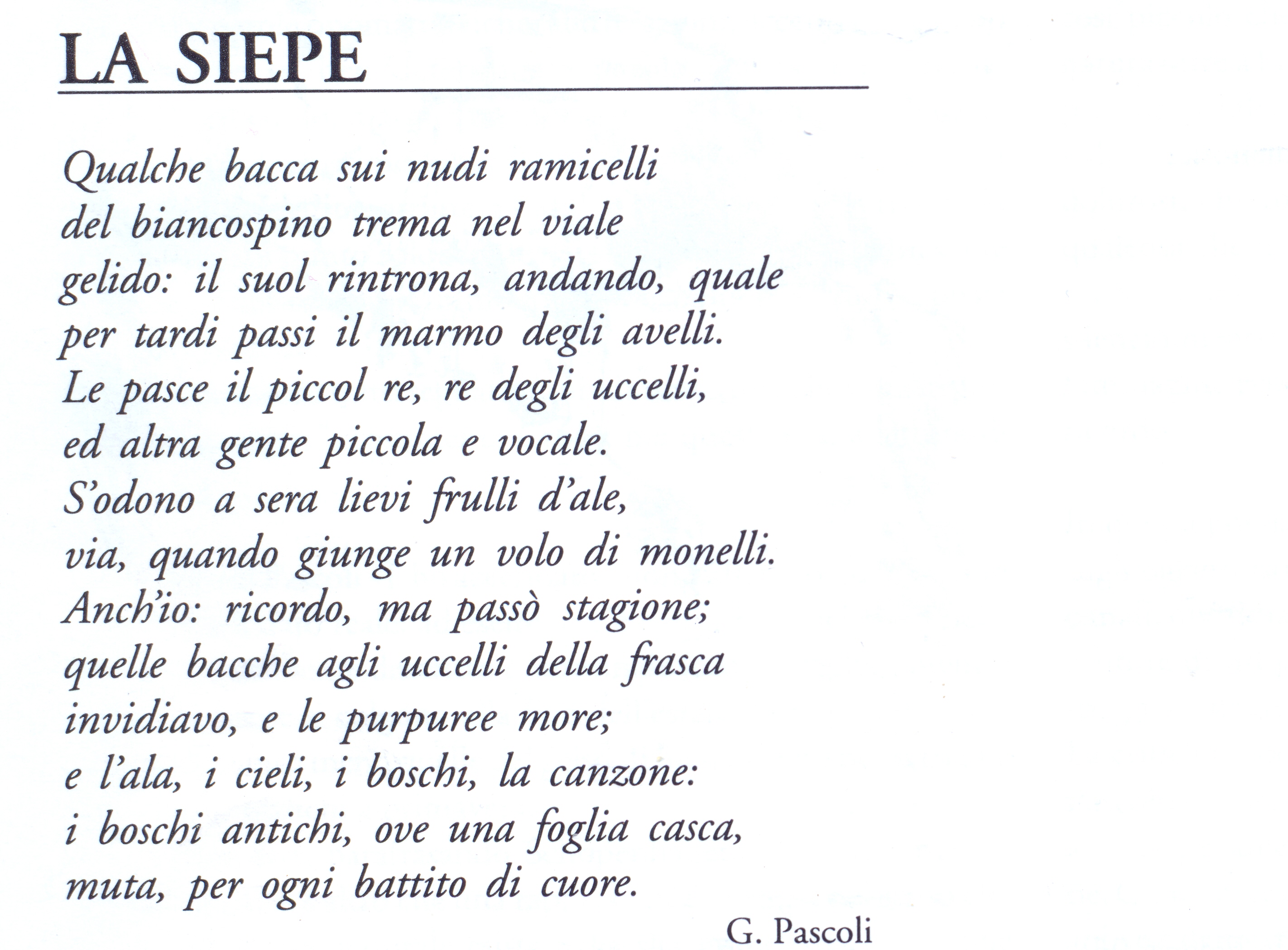 COMMENTO ALLA POESIA “LA SIEPE” di Giovanni Pascoli, del dott. prof. Francesco Gherardini