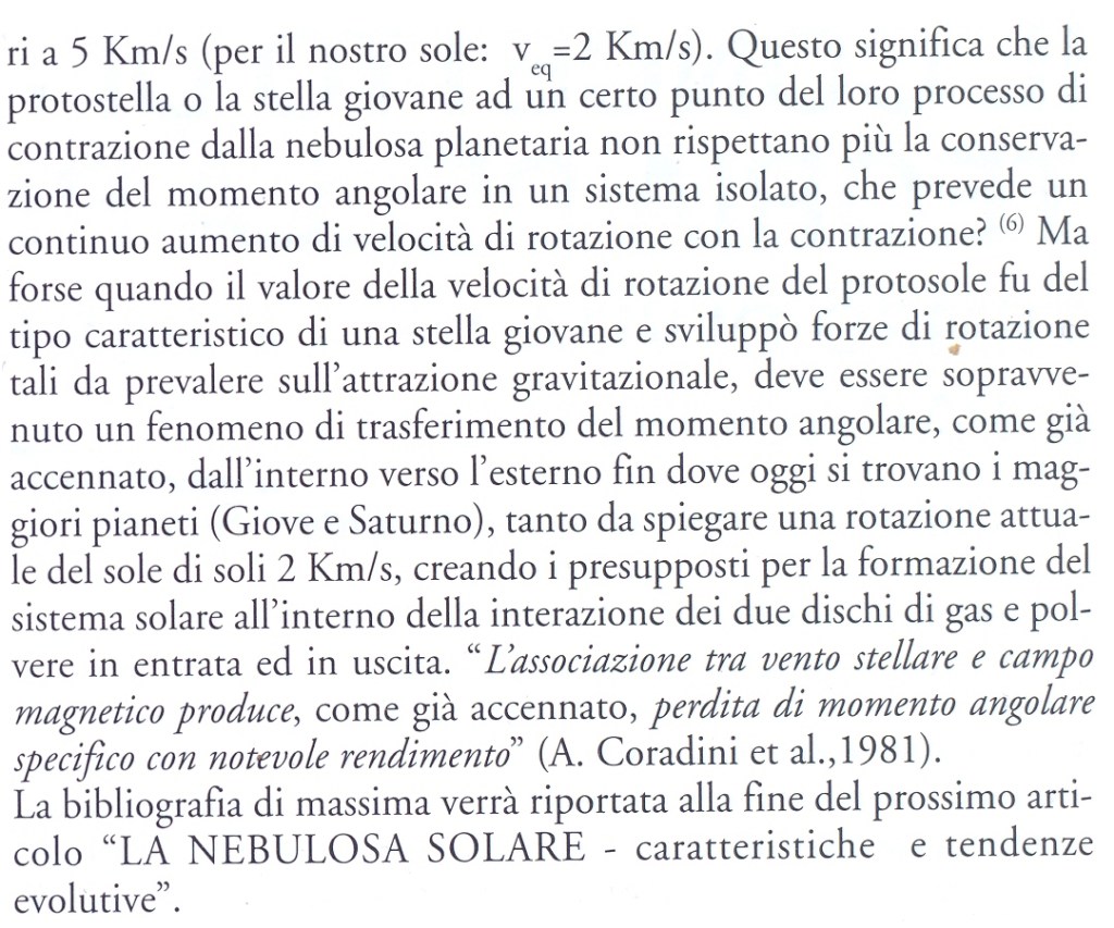 Si può leggere su questo argomento ancora, forse più leggibile, cliccando da CERCA “Origine ed evoluzione del sistema solare e delle stelle” e ” LA NEBULOSA SOLARE: caratteristiche e tendenze evolutive“, insieme ad altro