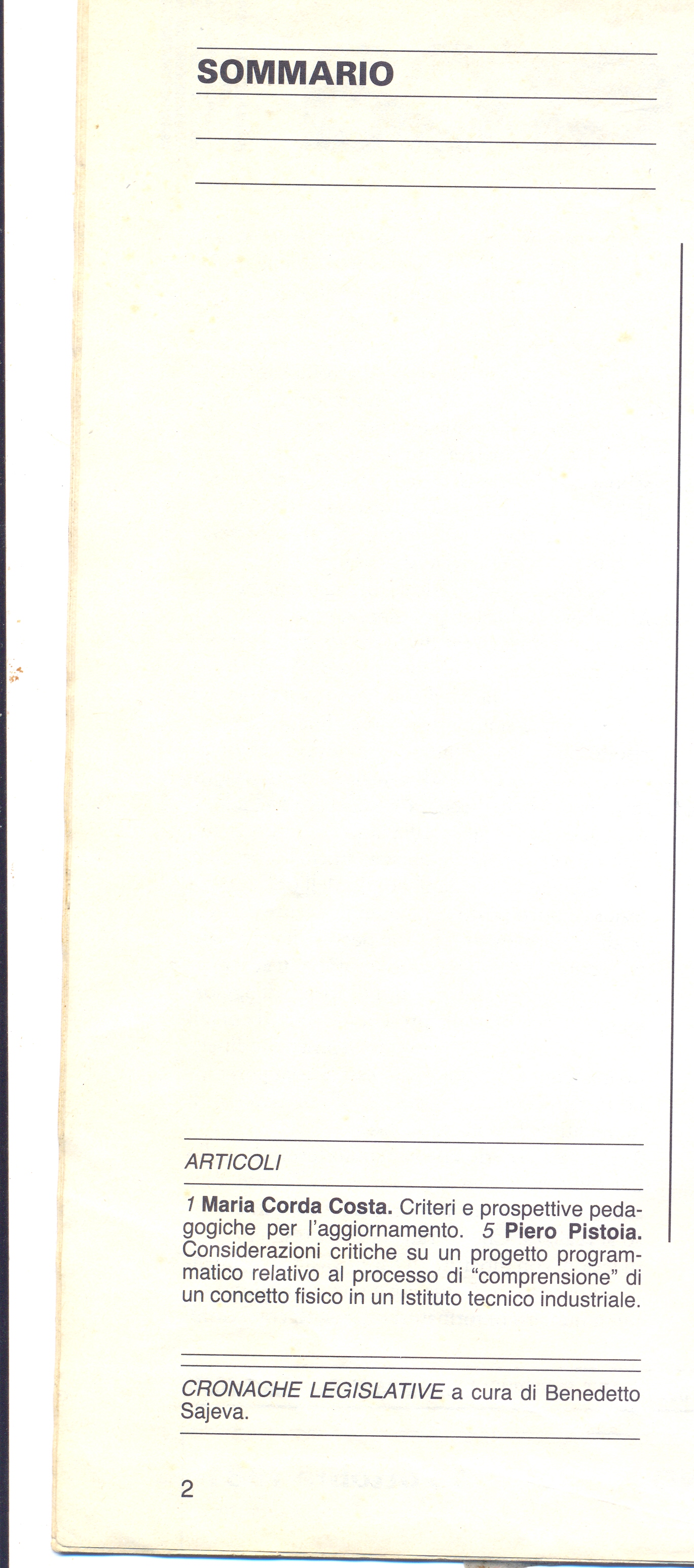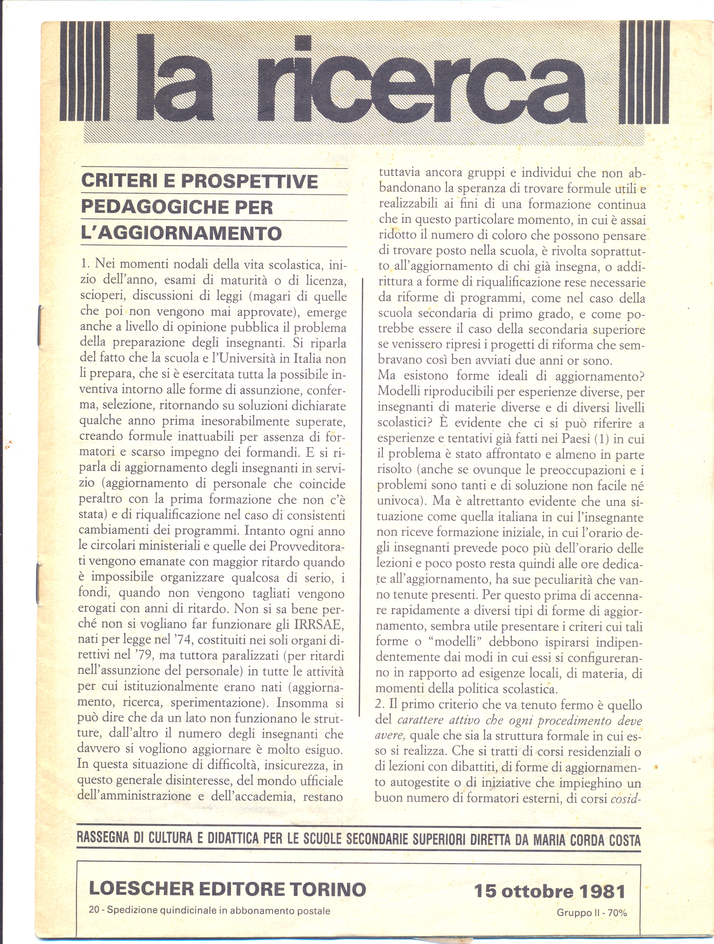 Contributo al dibattito su aggiornamento e sperimentazione