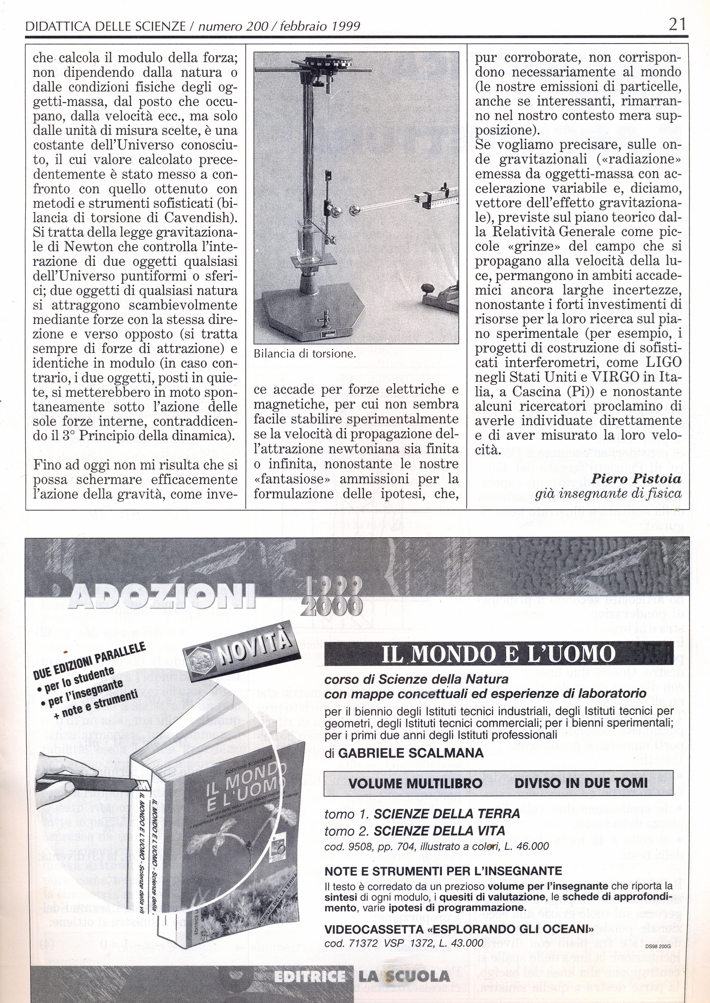 Questo scritto è stato trasferito da ‘Didattica delle Scienze’ N. 75, Ed. La Scuola, Brescia. Ringraziamo autore  e la rivista se ci permetteranno di mantenerlo sul nostro blog, senza alcun fine di lucro  e completamente auto-finanziato (per nostra scelta, non riceve alcun contributo esterno), il cui unico scopo è la comunicazione culturale gratis ; altrimenti, avvertito l’Editore del blog, alla mail ao123456789vz@libero.it, verrà soppresso.