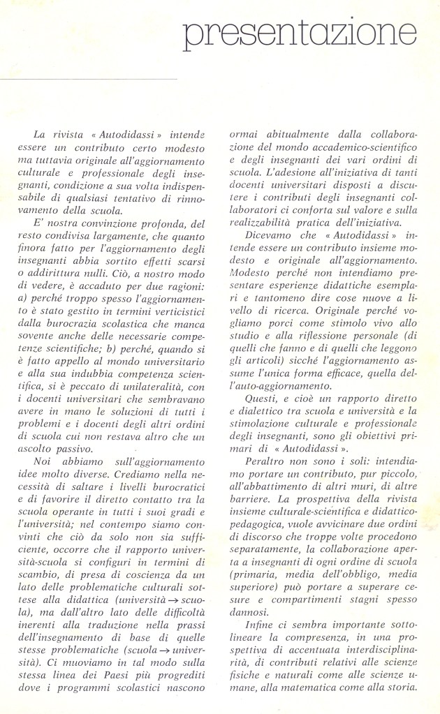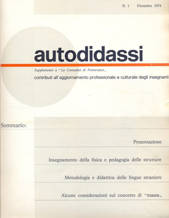 Rimaniamo convinti che questi scritti pur datati, potrebbero ancora essere di stimolo e guida, anche per i contenuti ed i processi, in queste esperienze non esauribili, vista la complessità insita nel lavoro ‘insegnativo’.