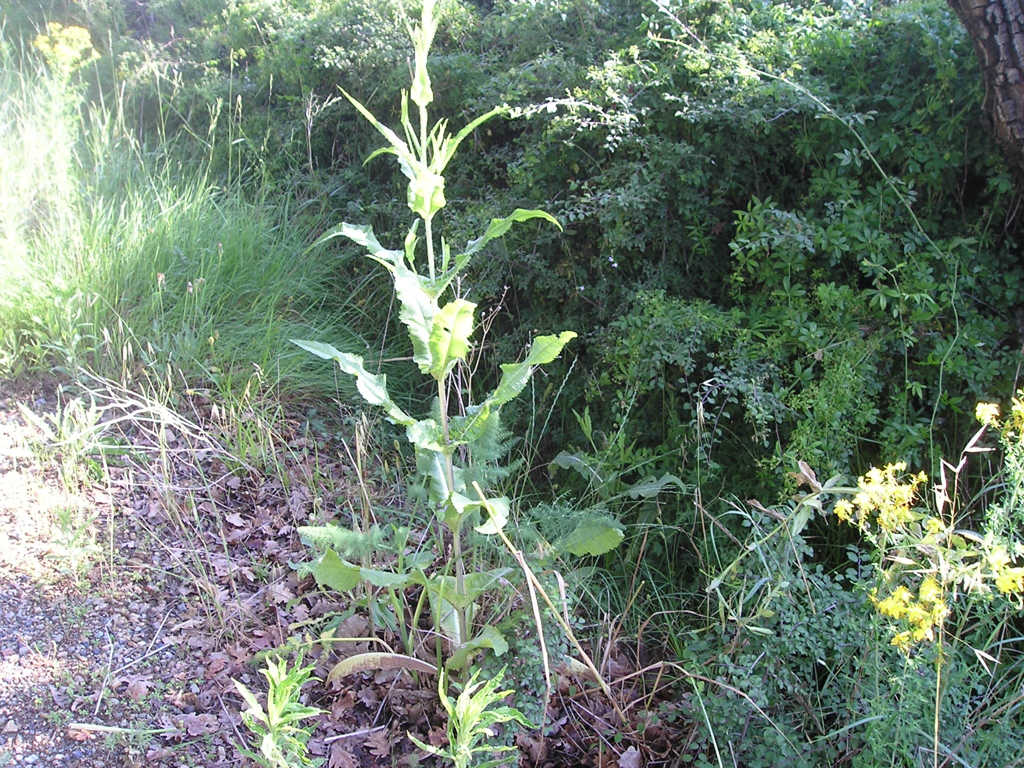 Queste 3 specie si trovano tutte quante vicinissime, nel tratto di strada mostrato dalla foto. Colonizzano il ciglio e l’argine della via, sia a dx che a sx. Sono specie molto simili tra loro, si differenziano dalla forma delle foglie, ma per l’esatta identificazione, dovremmo aspettare la maturazione d e i frutti…… Simili anche loro, ma potrebbero essere di aiuto.