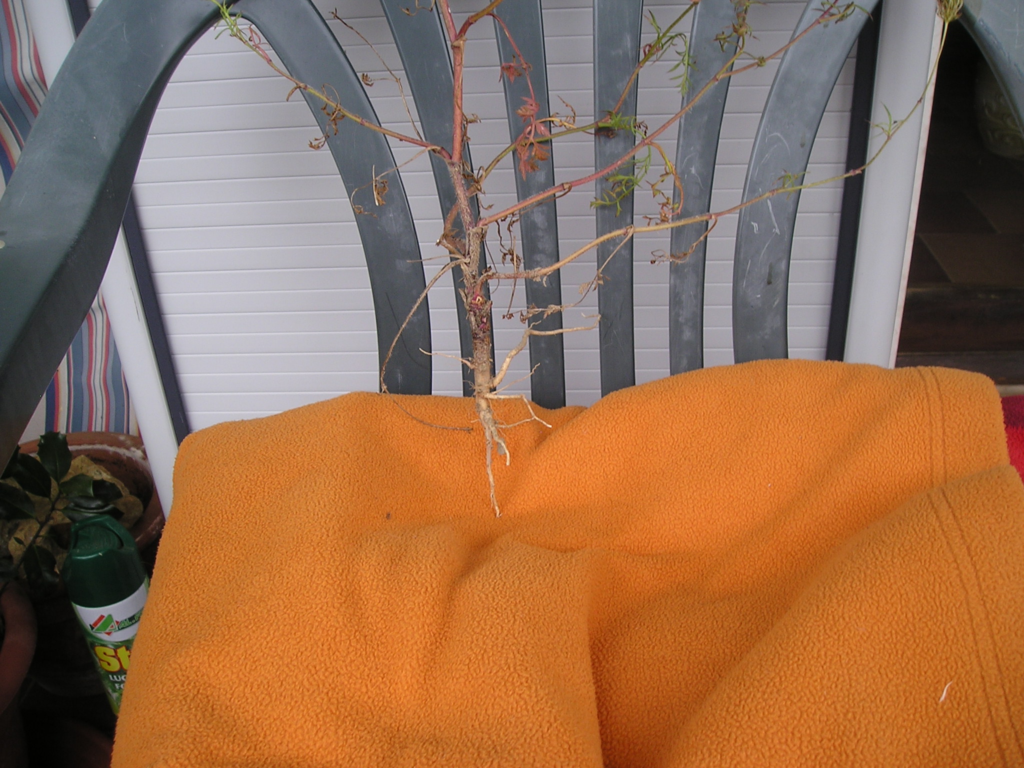 Sotto: oggi 25 aprile una gemma sta esplodendo  in  una infiorescenza ad ombrella corroborando l’ipotesi di una Apiacea o Umbellifera; per il genere e la specie ancora da vedere.
