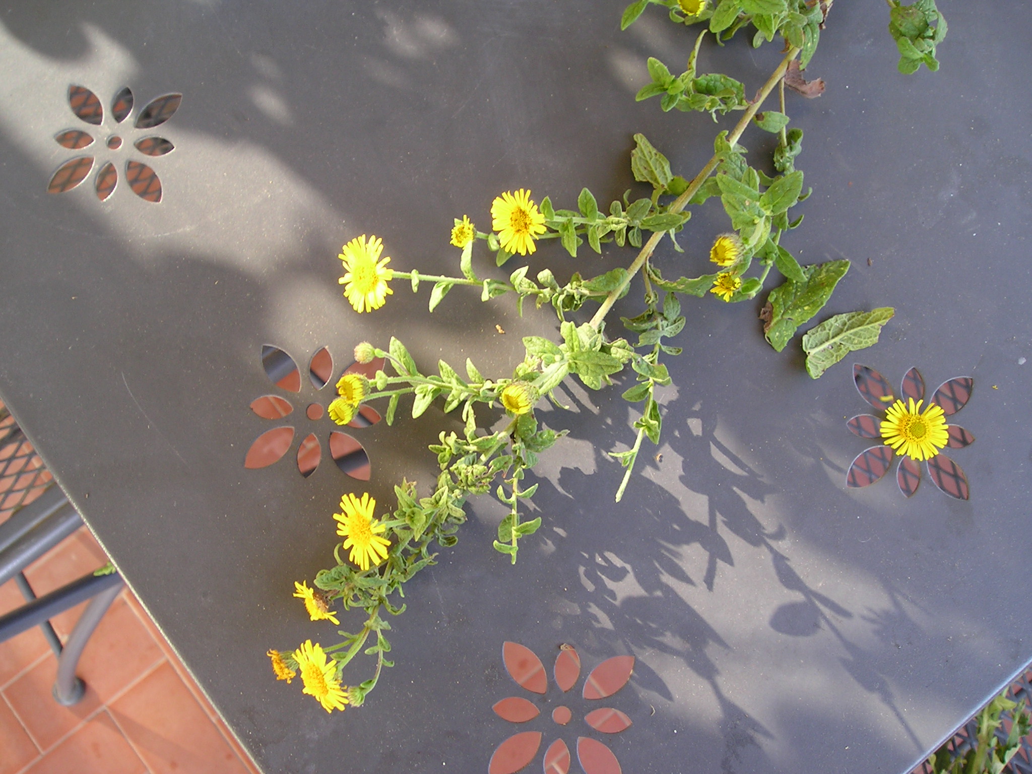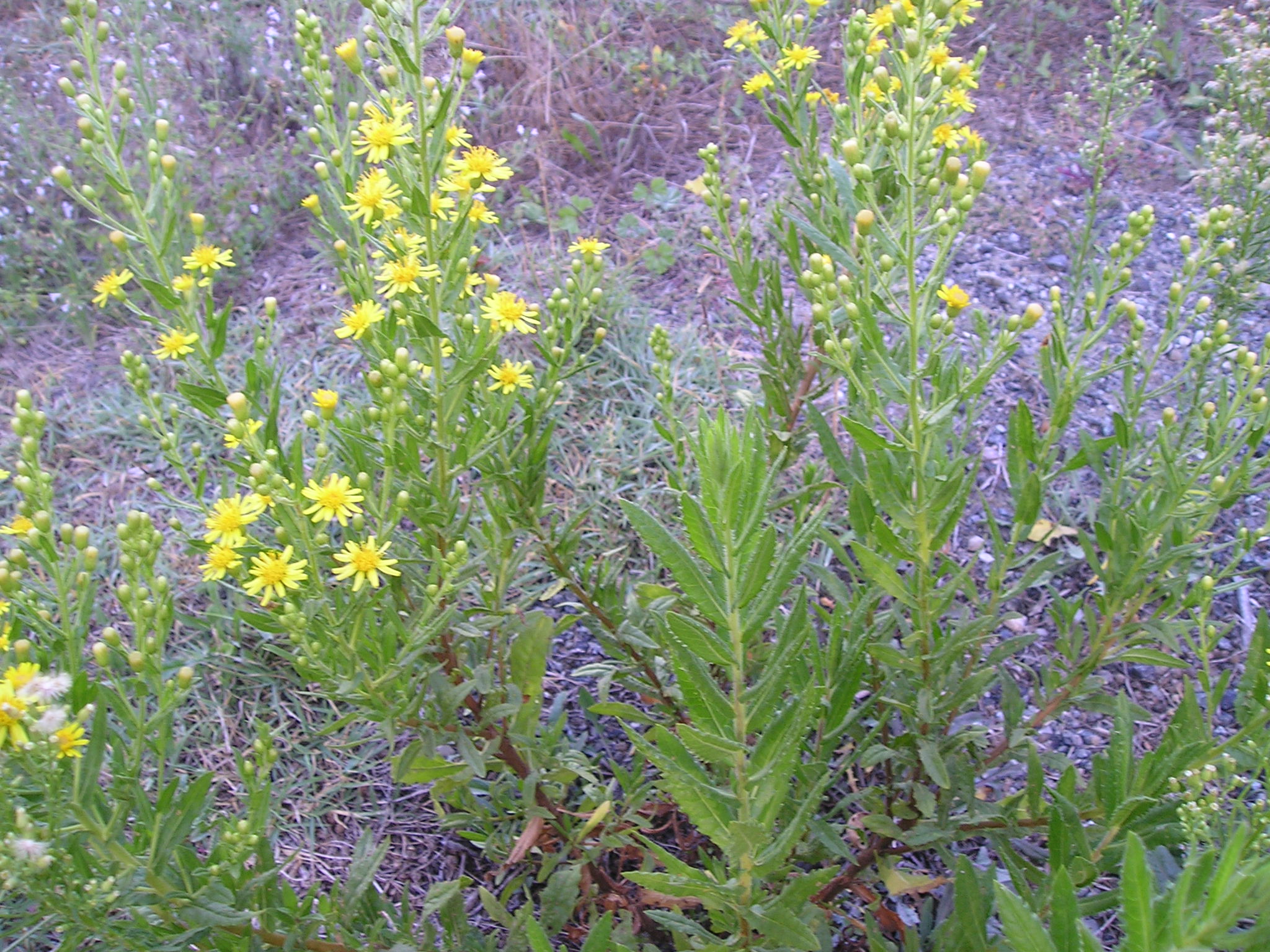 SEGUONO FOTO DI CONFRONTO ATTUALE (metà ottobre) FRA:  Erigeron (Conyza) bonariensis e Symphyotricum (=Aster) squamatum, ‘compagne’ sul campo, frequenti scendendo via dei Filosofi e verso Poggio Bianco a sinistra della strada.