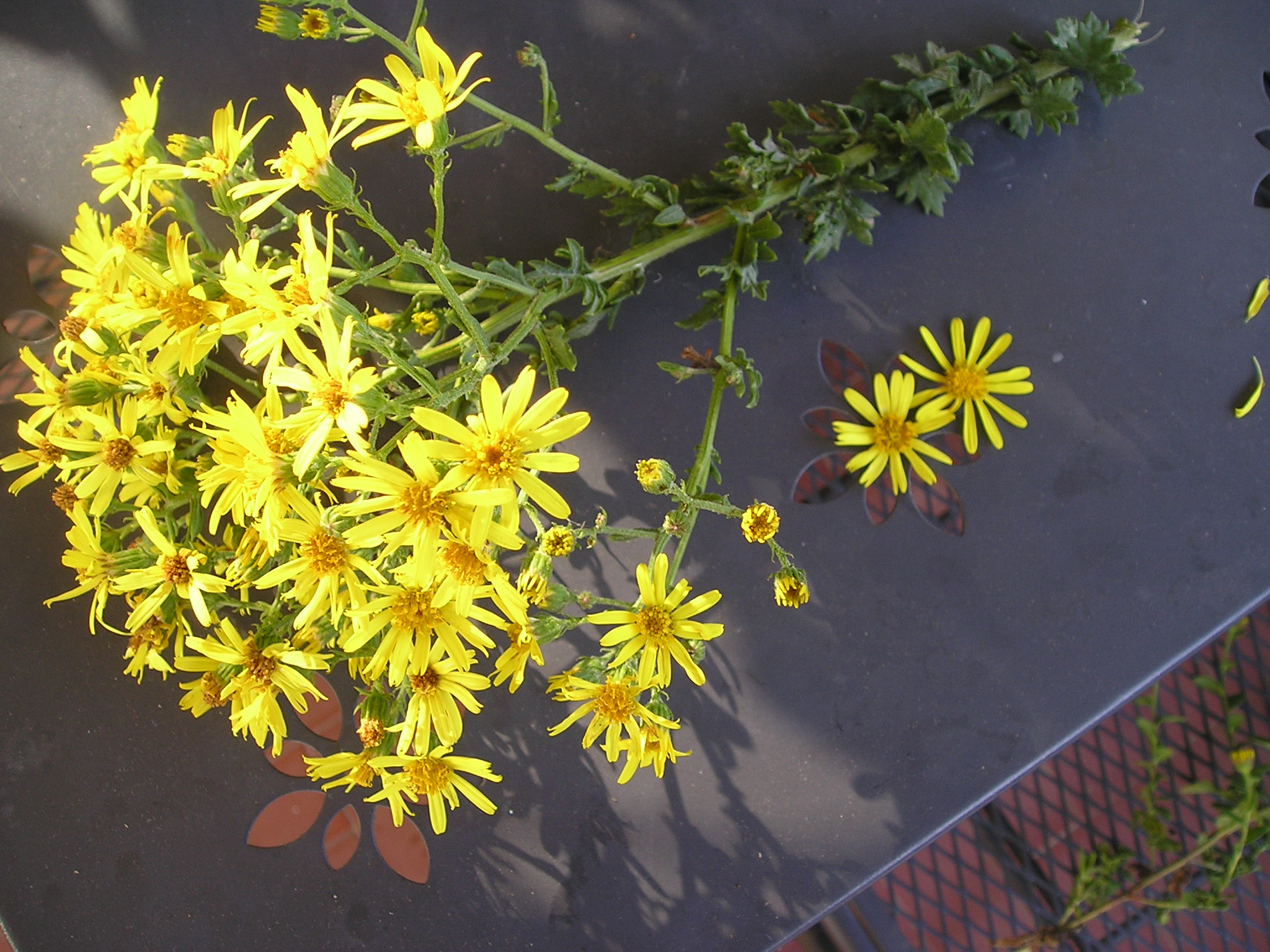 Si è recata sul posto e  racconta che:<< La fioritura della Brassicacea in questione sta diventando superba, come la rosetta di foglie che le sta vicino. Non è facile identificare questo genere di Brassicacee, tutte molto simili, soprattutto se la seconda loro fioritura non portasse ad osservare bene anche il frutto. Però vista da vicino, mi sono quasi convinta che si possa trattare  di una Senape selvatica – Sinapis arvensis . Oltre il fiore, è proprio la rosetta basale che è tipica di questa pianta>>. Seguono le tre belle foto di Cristina di questa Senape: