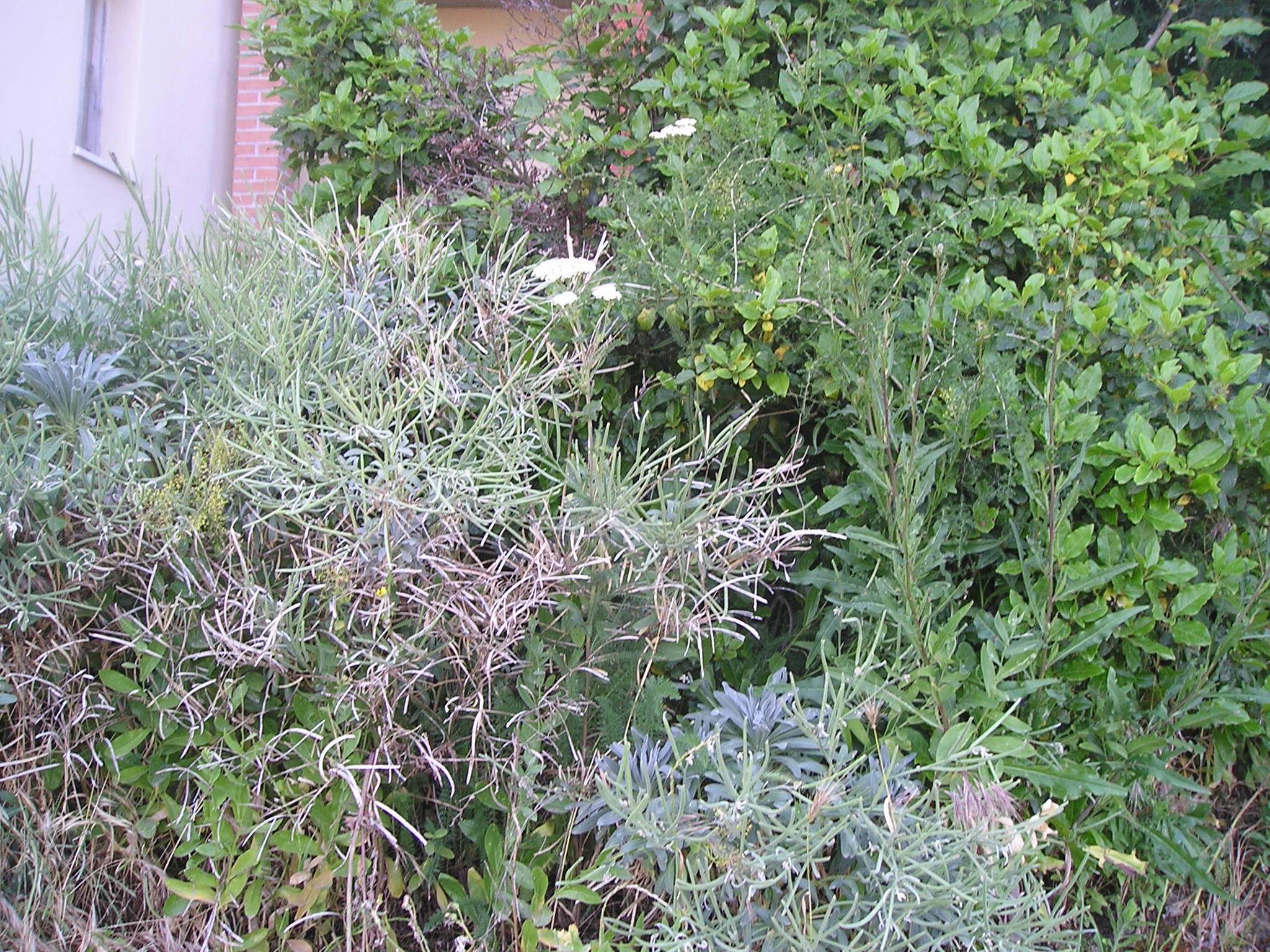 Rosette basali di Achillea millefolium sono ora rinate abbondanti nel fossetto lungo strada al Podere San Vittore, salendo a sinistra, proprio sotto i corimbi delle piante precedenti già rammentati, maturati durante l’estate ormai rinsecchiti ed anneriti, ma ancora presenti a sovrastare quelle del giardino. Seguiranno foto.