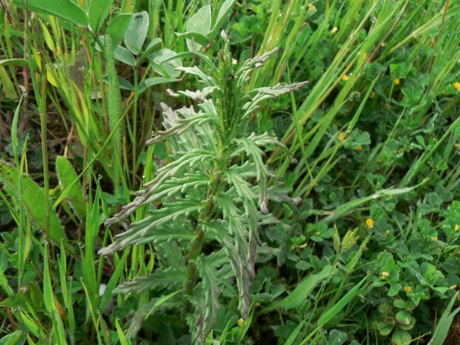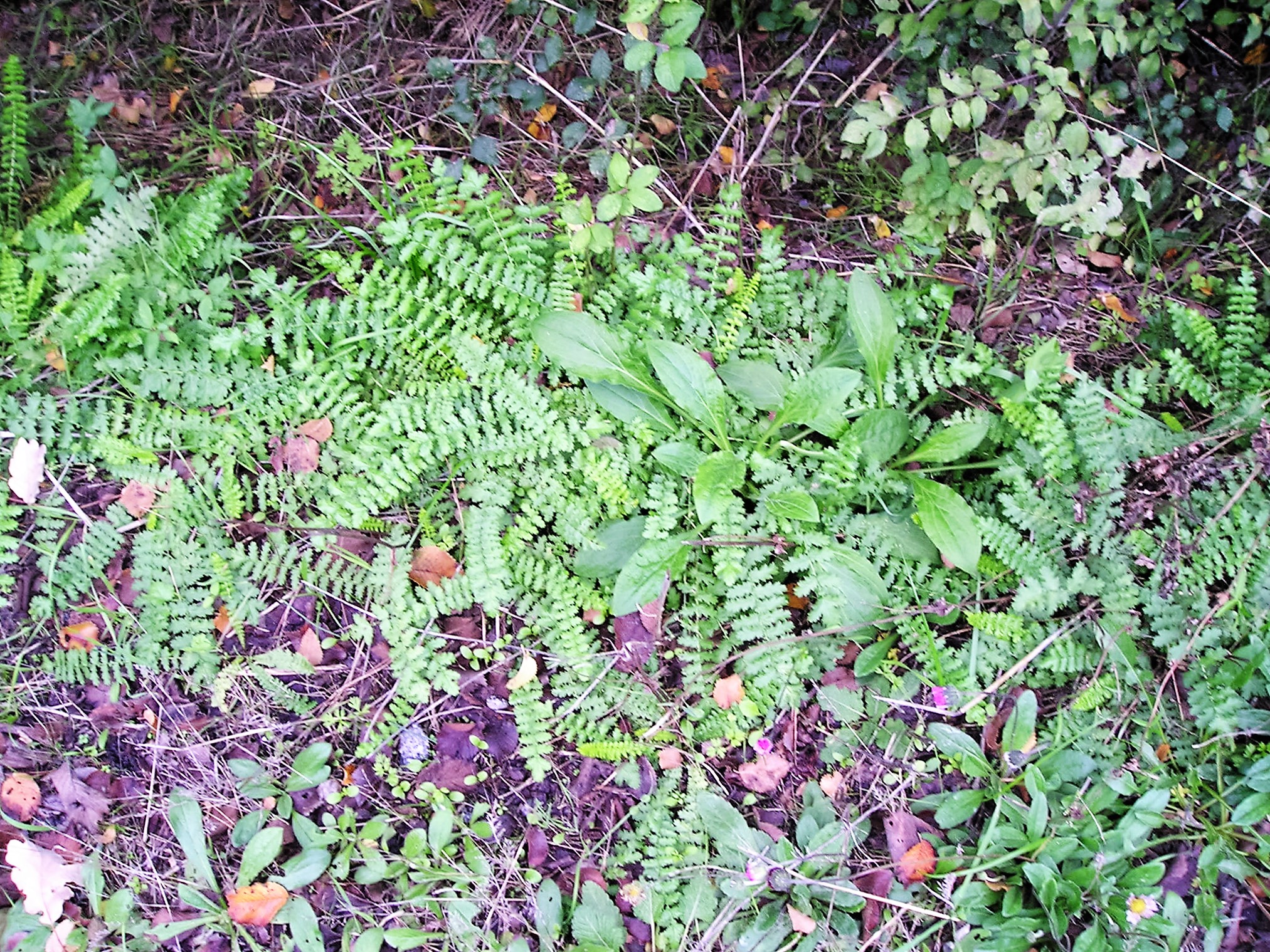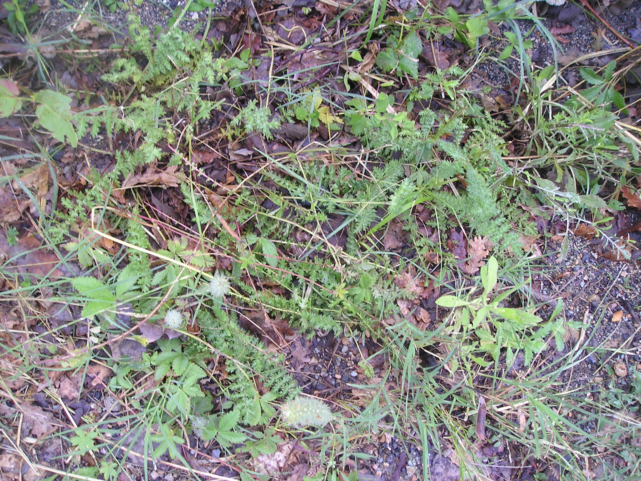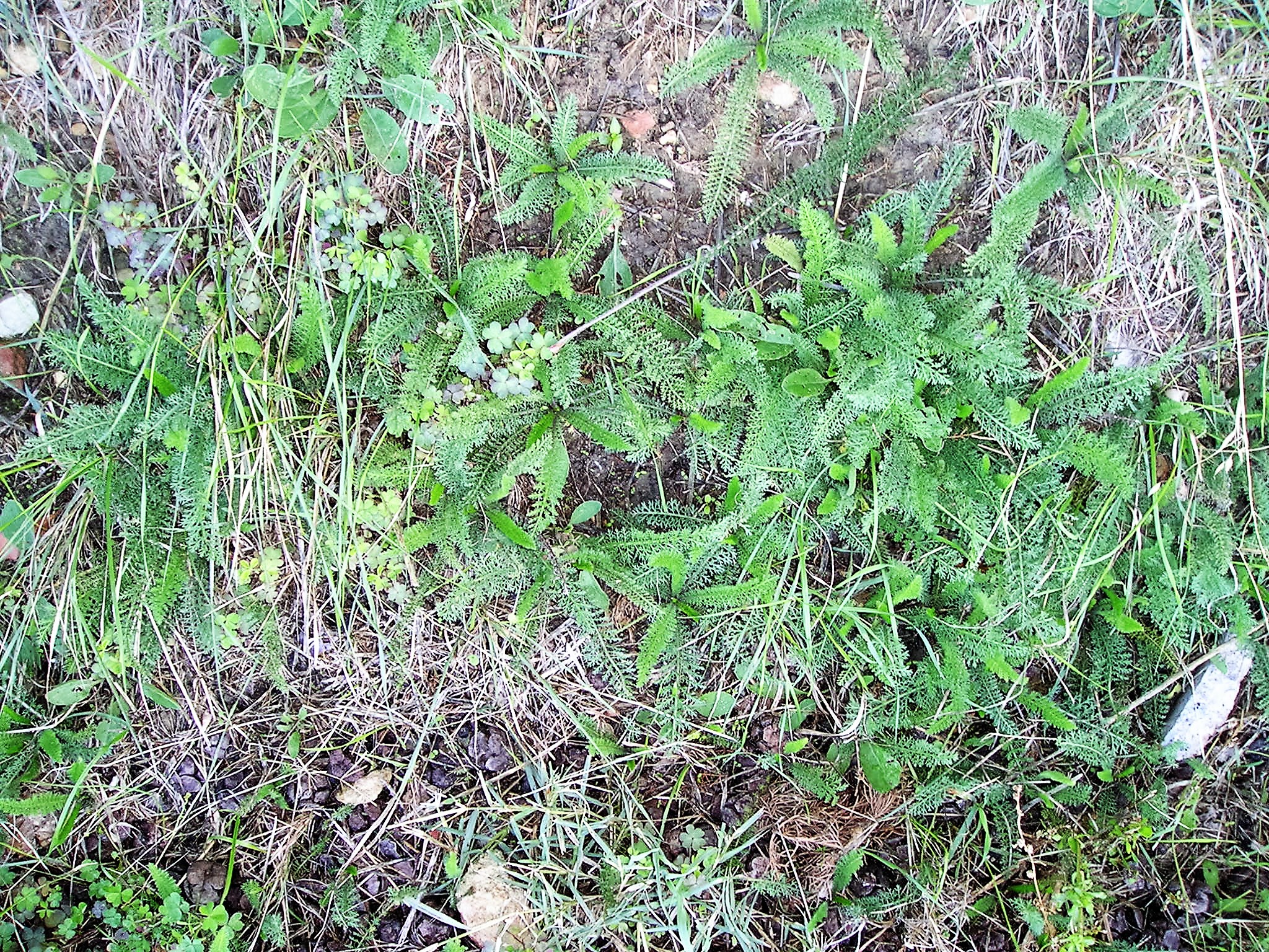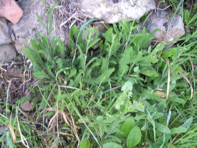 Rosette di base di A. millefolium nel fossetto sotto l’argine del P. San Vittore nate dai semi delle poche piantine estive sovrastanti descritte in luglio, che ancora esistono rinsecchite e con corimbi anneriti.