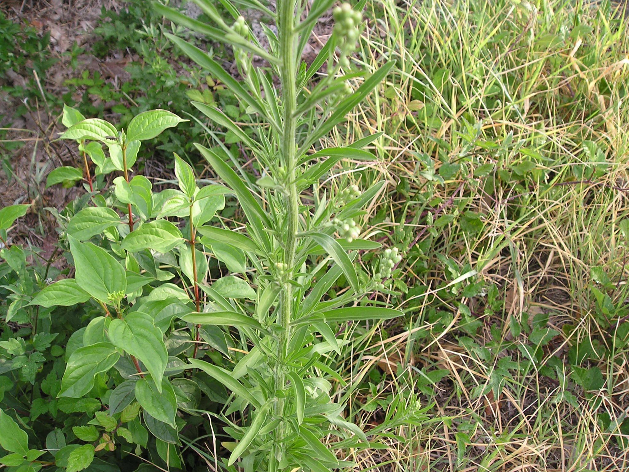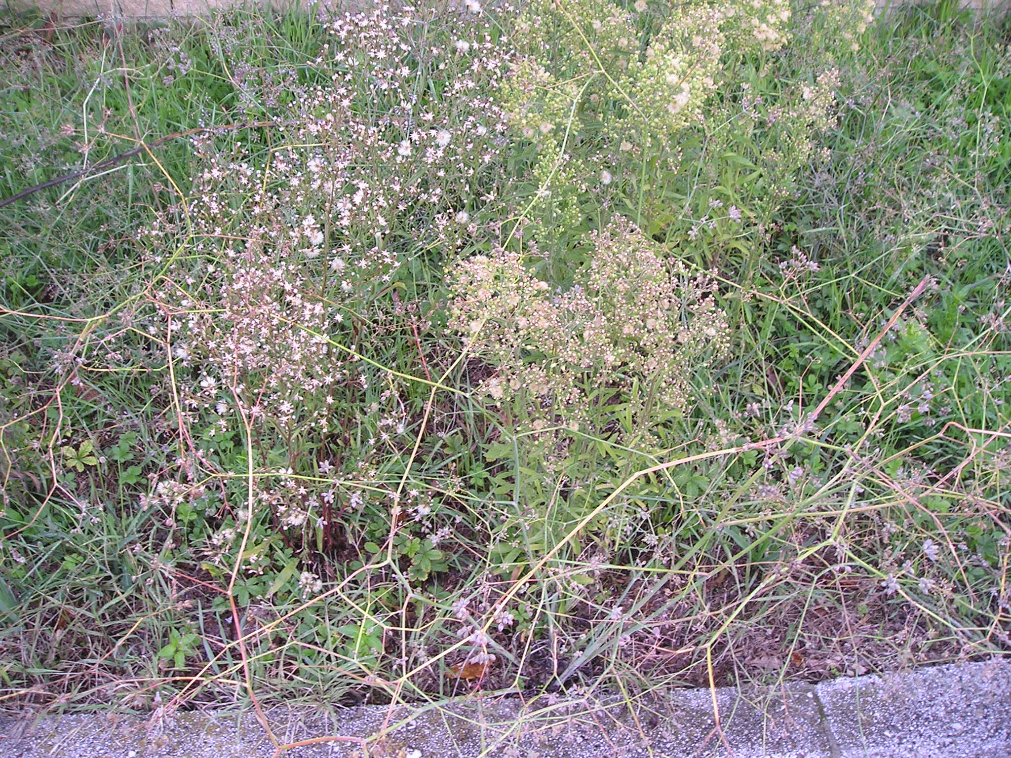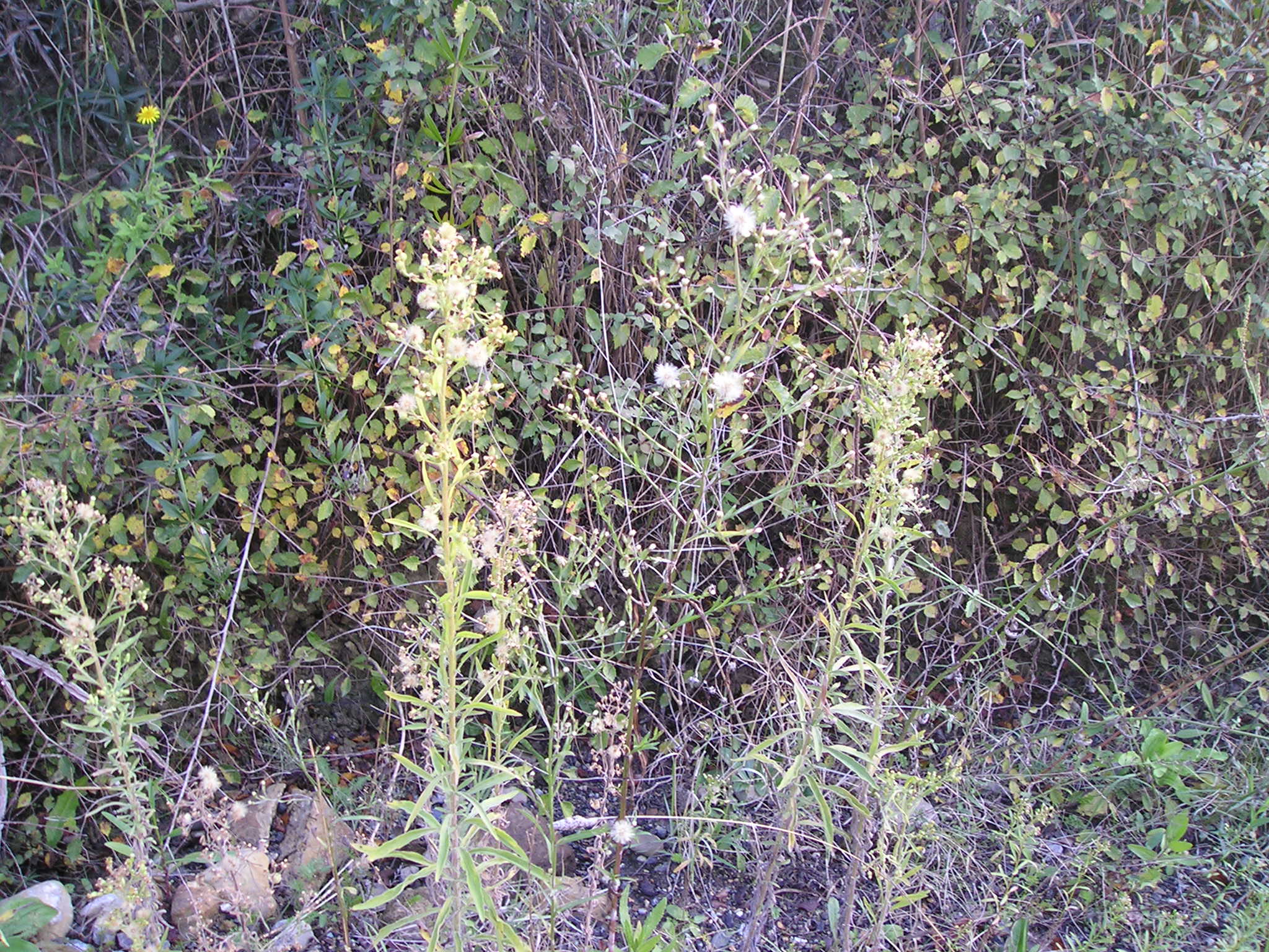 Symphyotricum squamatum ed Erigeron bonariensis, piantine con frutti in Via dei Filosofi