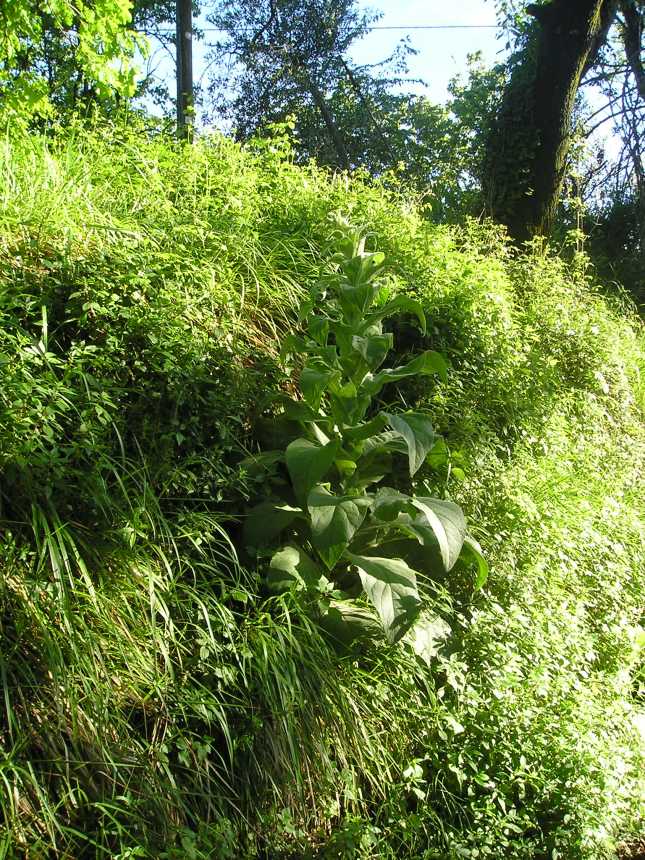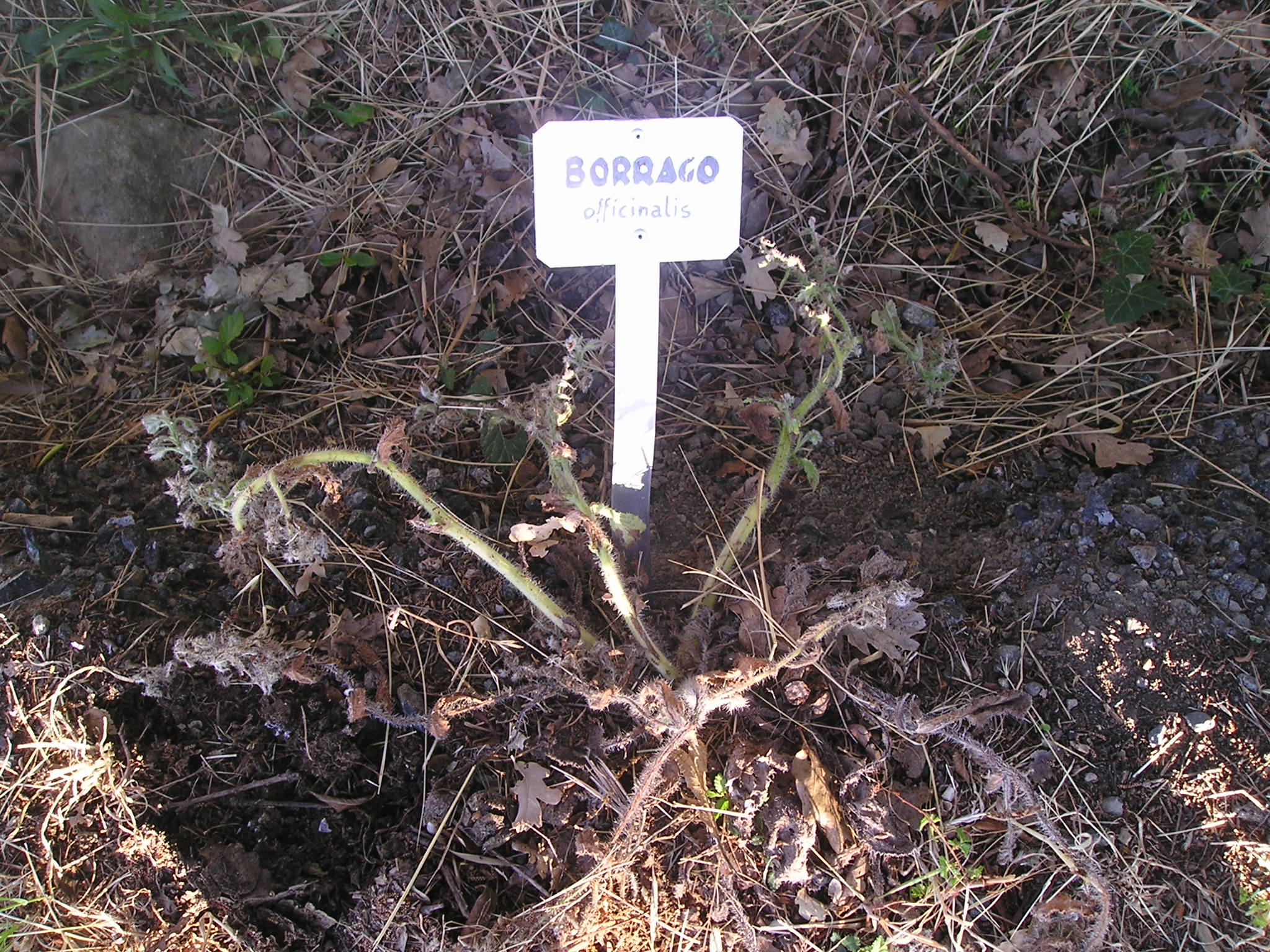 Una ventina di metri dopo il Ponsino verso S. Vittore, sulla destra esiste una etichetta (ancora presente; quelle per la Cerinthe e per Achillea sono sparite!) per la Borago officinalis che era seccata; ora sono riapparse delle rosette di base; speriamo che siano di Borago ricresciuta.