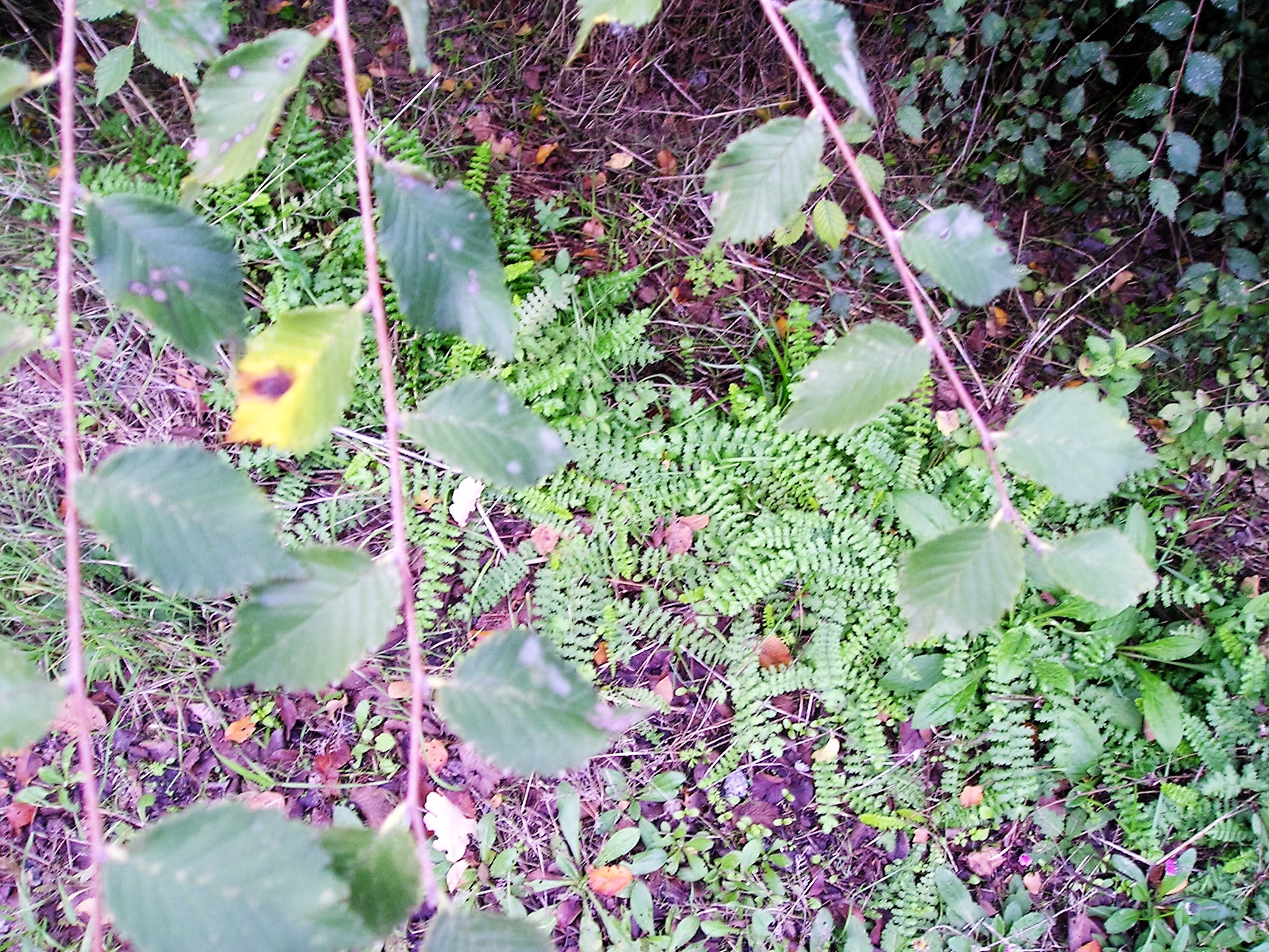 Rametti di Ulmus campestris sopra rosette nel fossetto di Filipendula exapetala presente in ottobre davanti all’argine del P. Santa’anna.