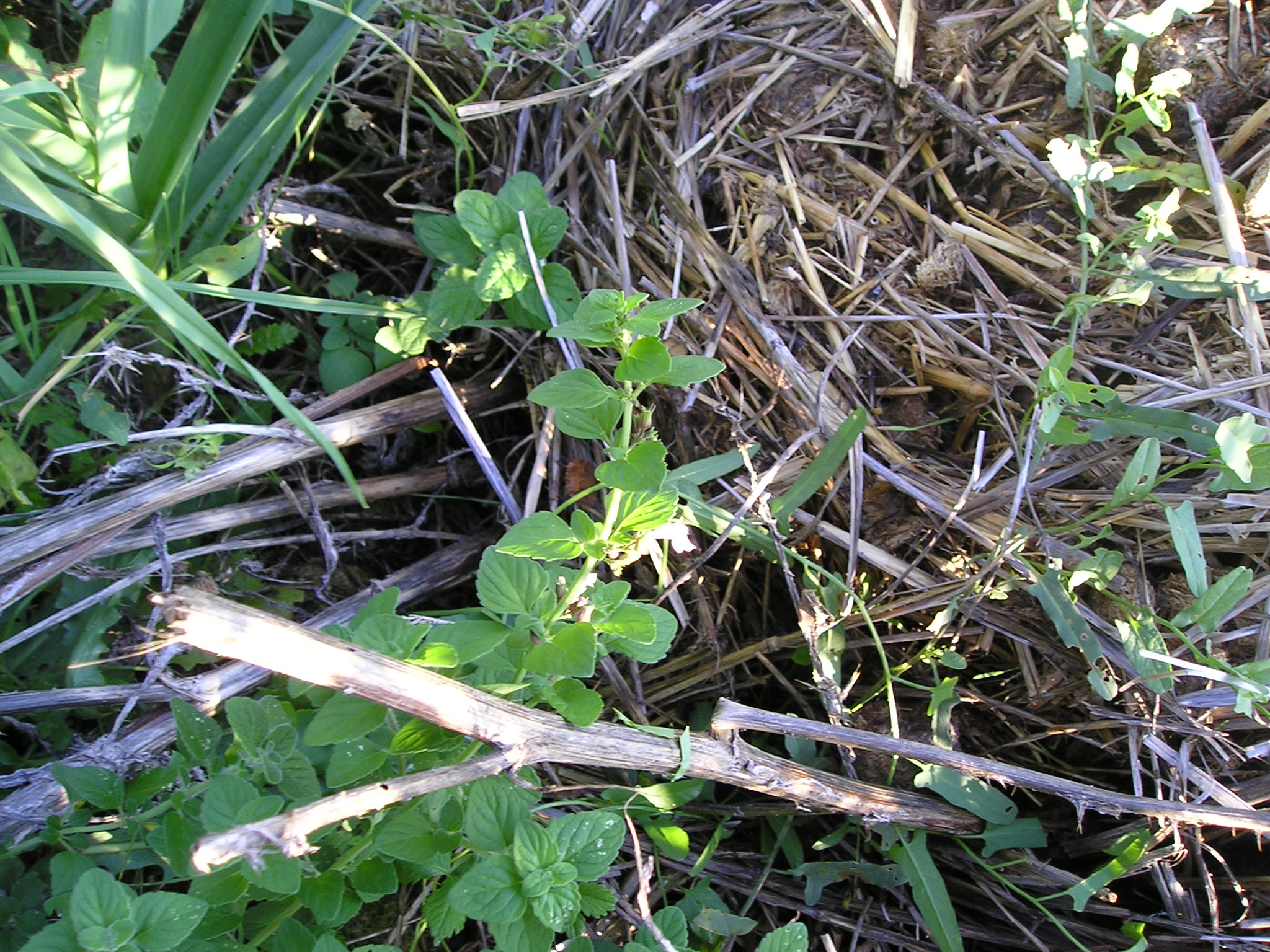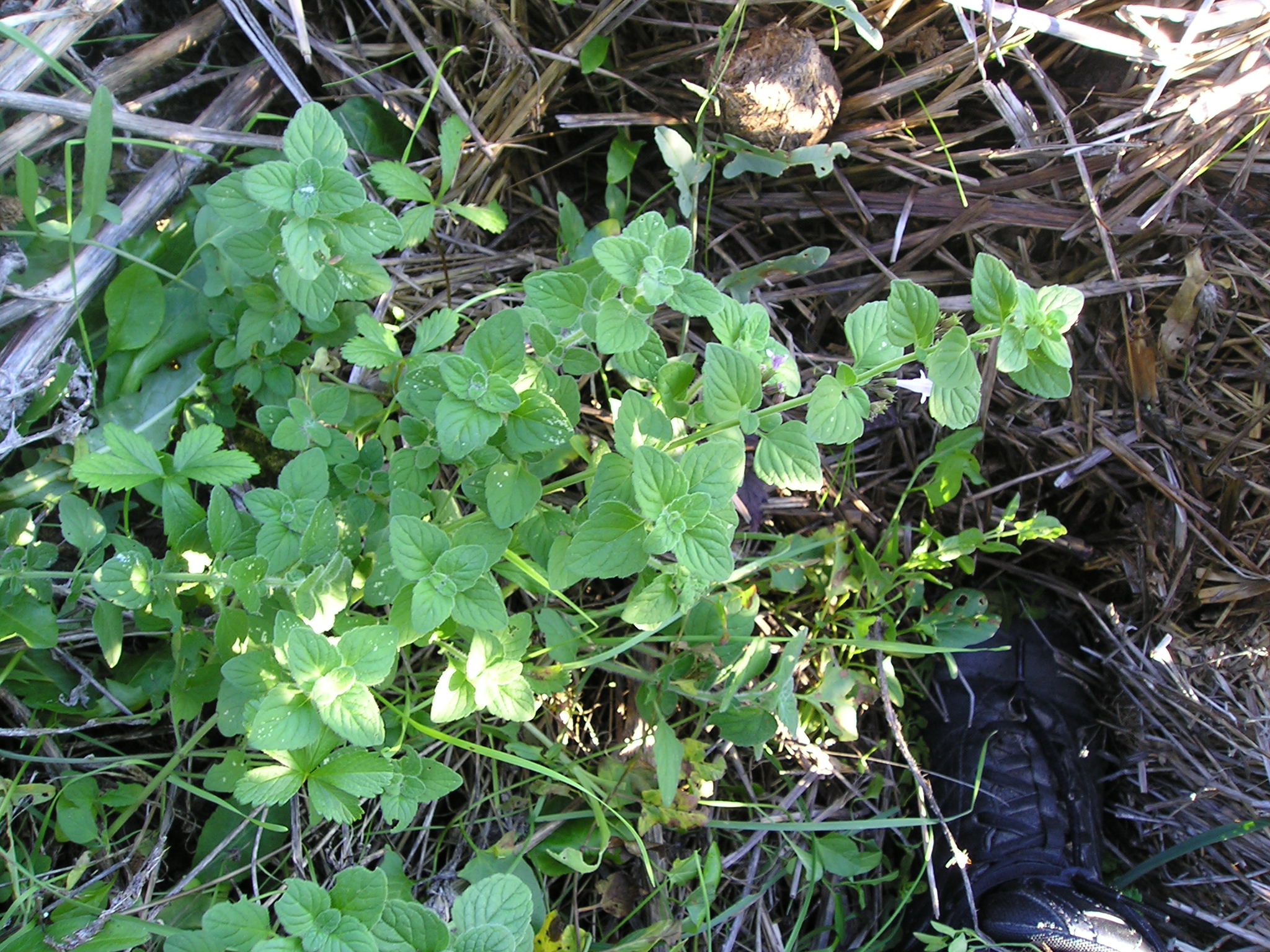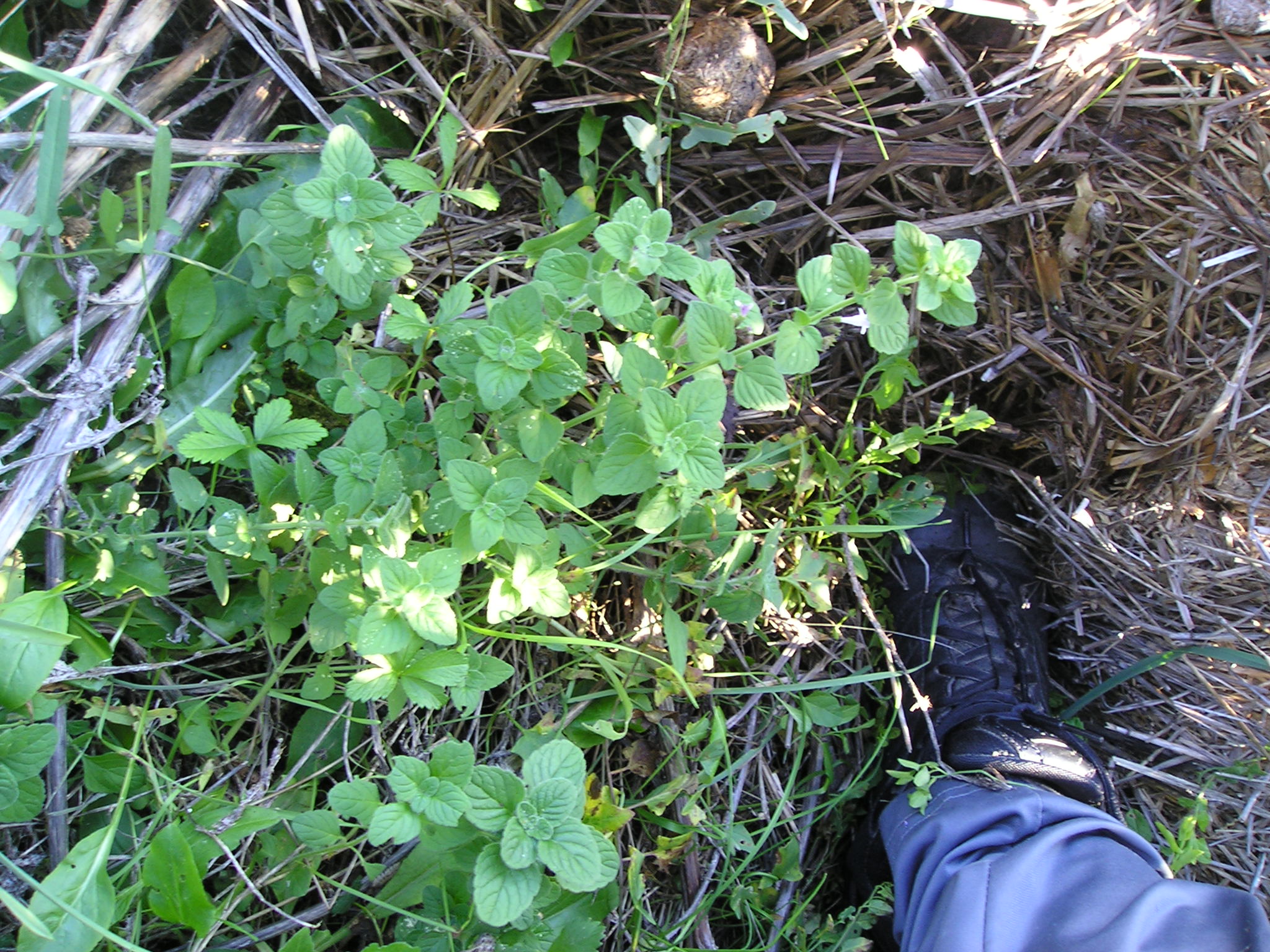 Ho notato invece una crescita di pianticelle di Menta, anch’essa Labiata, non ancora fiorita, al bordo strada proprio davanti ai ciuffi della Ballotta nigra; qualche pianticella in fiore si trova invece a sinistra poco prima a circa un  metro  subito sotto strada. Le tre pianticelle, presenti  insieme alla Ballotta, quattro se si aggiunge la Salvia selvatica, si distinguono nell’immediato strofinandole: la Ballotta è fetida, la Calaminta ‘sa’ di Nepitella e la Menta di Menta, la Salvia (?)… nessun odore! Ho cercato di fotografare come mi riesce: