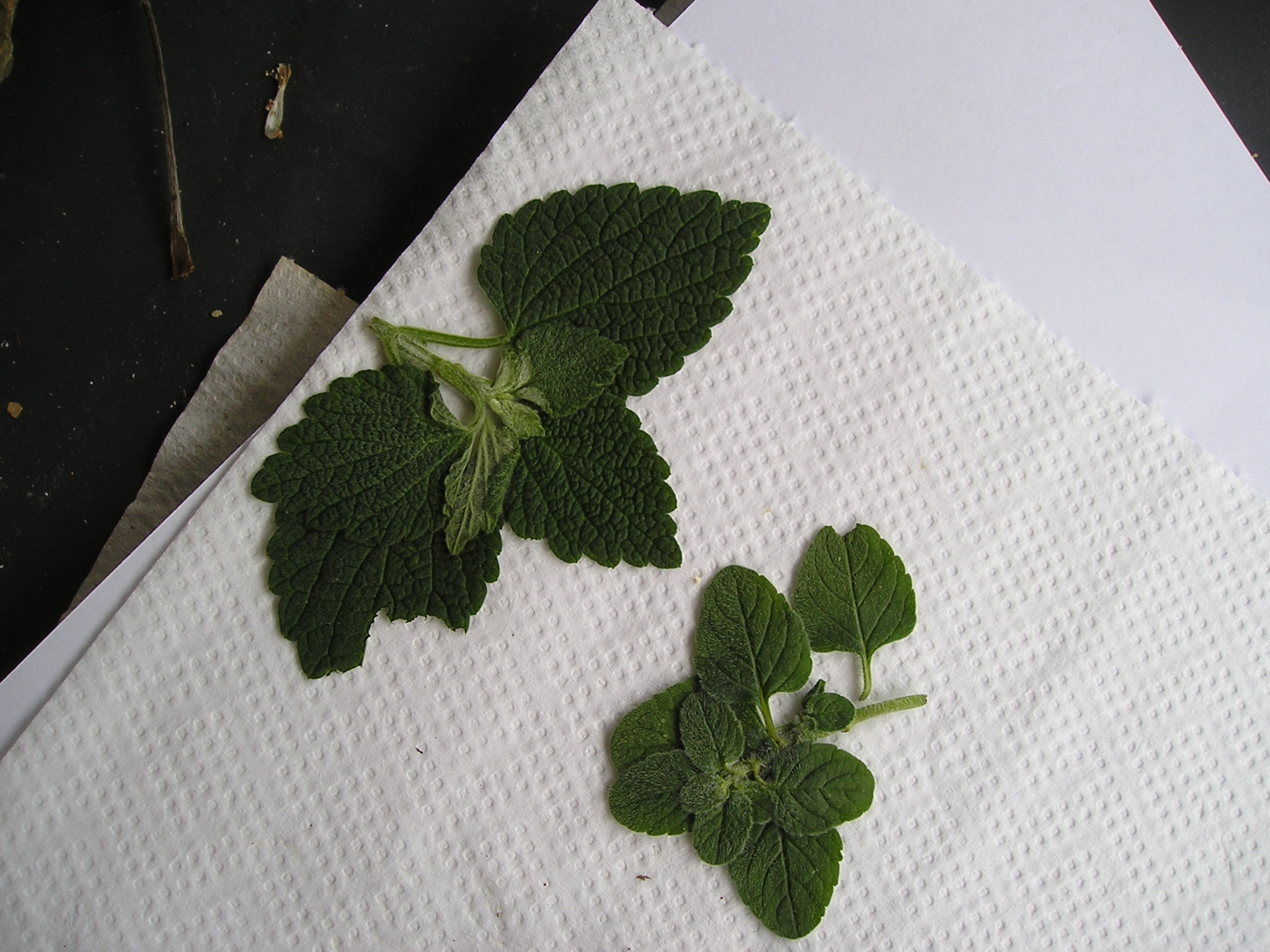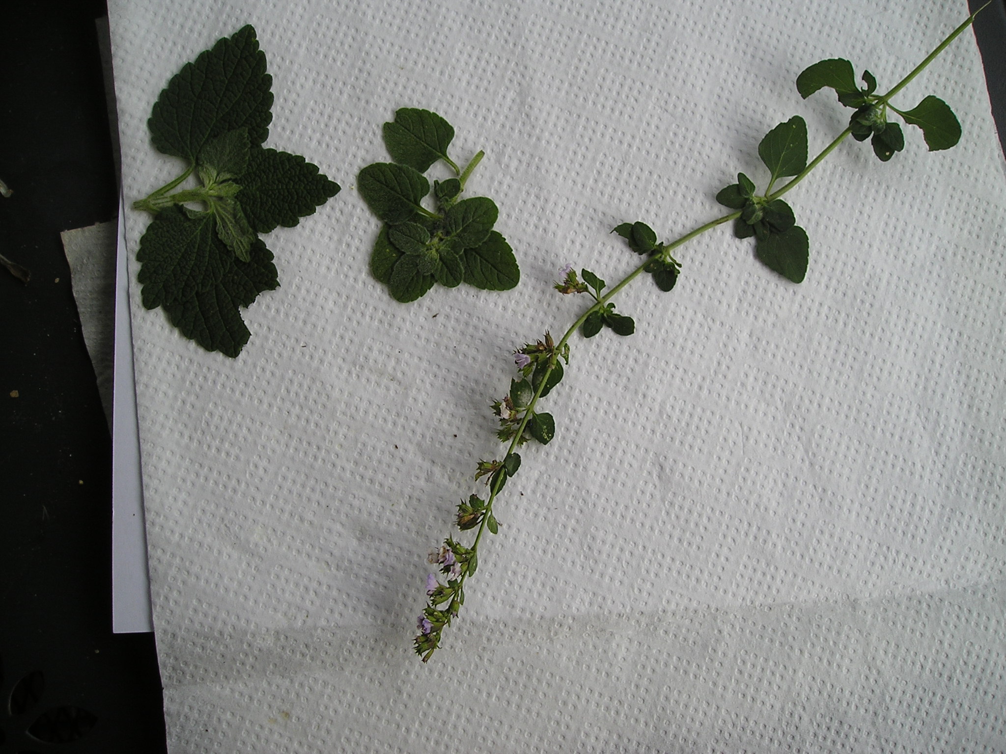 Foglie della Ballotta fetida, in alto a sinistra e della Menta