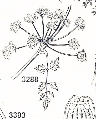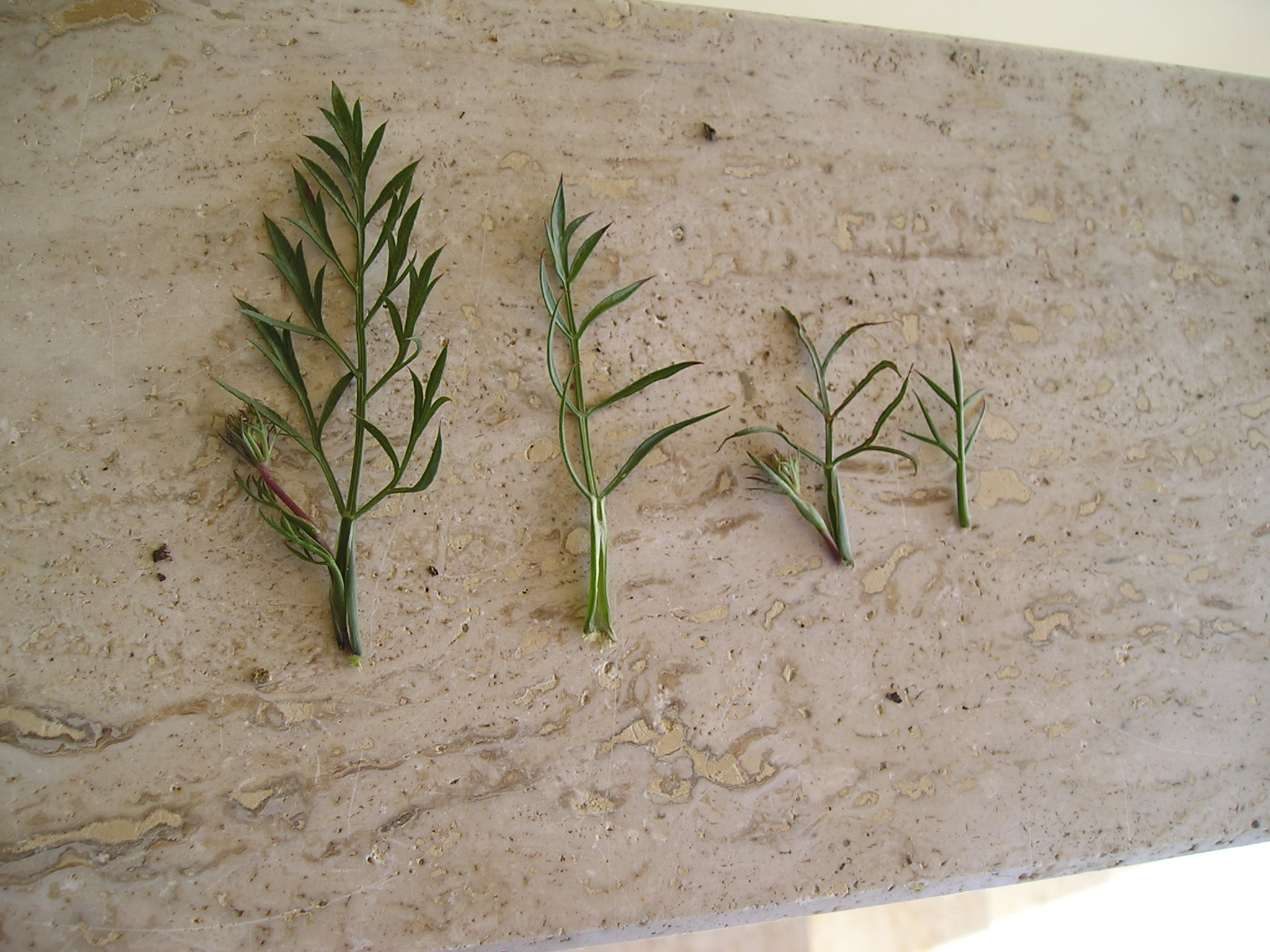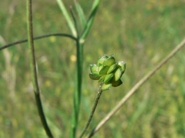 Sopra, tre gemme fiorifere e foglie filiformi amplessicauli