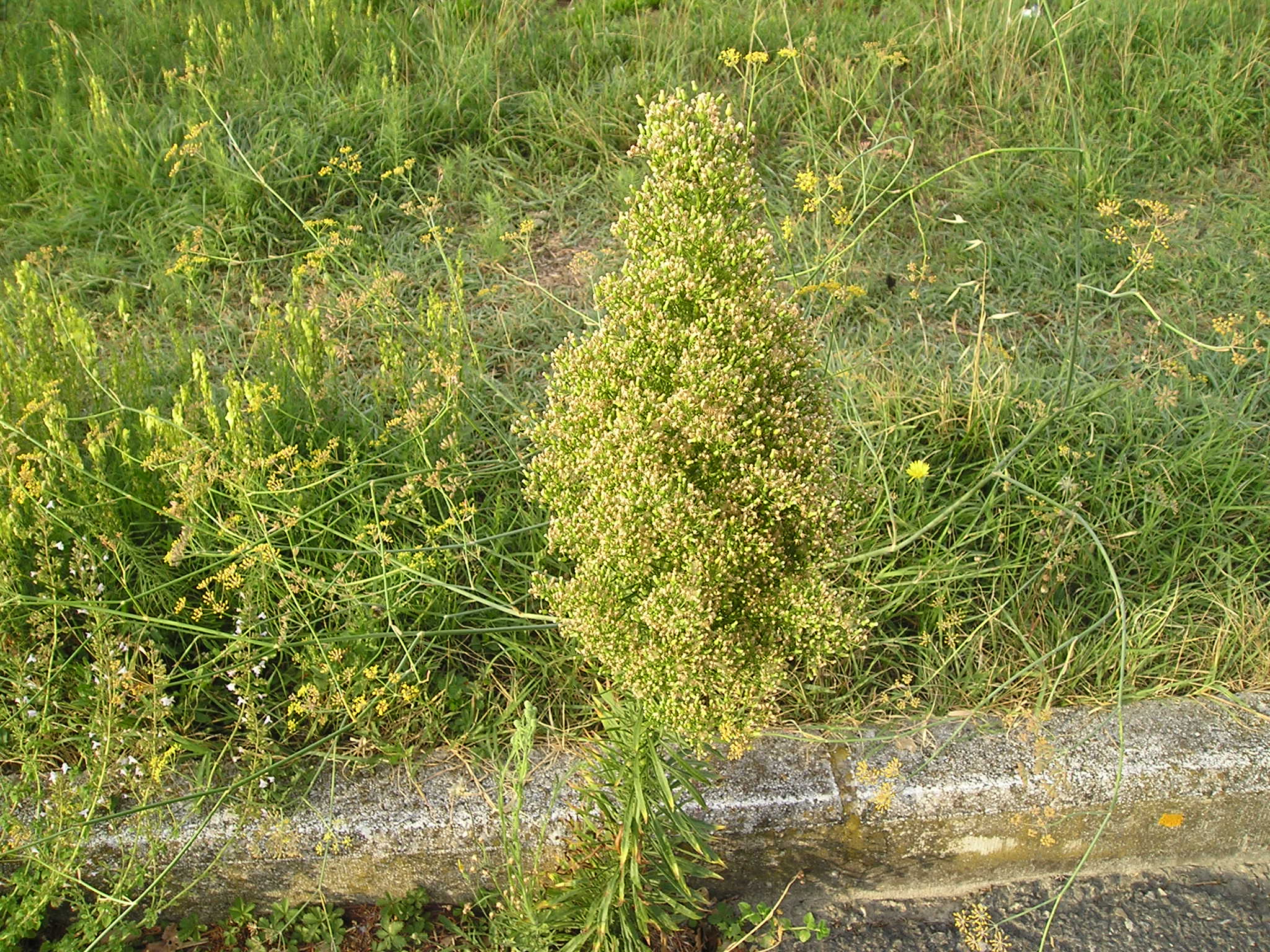 Cristina, la nostra co-autrice e ‘classificatrice’ di riferimento, invitata ad osservare questa Crucifera, dalle foto è incerta fra una Brassica nigra (Senape nera) o Brassica rapa (Colza) se avesse le foglie abbraccianti il fusto, o ancora Rapistrum rugosum, se le piccole silique fossero meno allungate delle altre rotondeggenanti; dice che si recherà sul posto poi si vedrà.