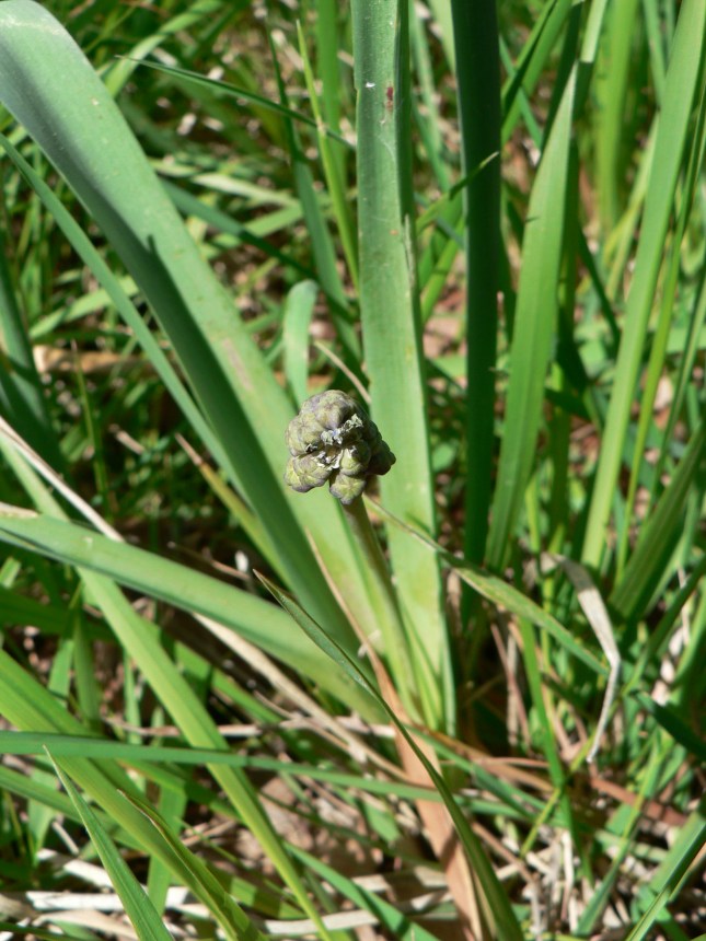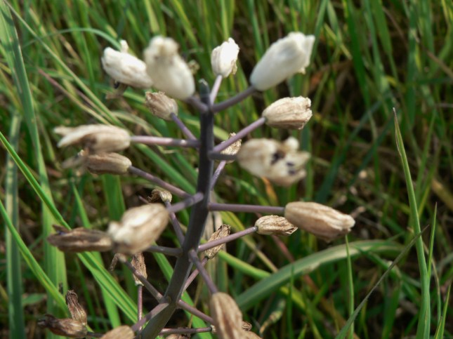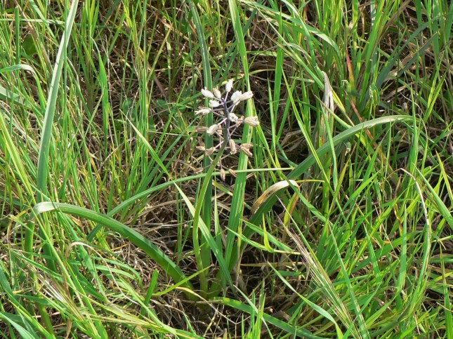 3. Sulla dx, di fronte alla apertura che porta a S. Anna, nel cespuglietto della foto, (dove inizia una specie di viottolo che segue i campi) ho notato, anche se ormai a fine fioritura, un ‘Giacinto romano’: Bellevalia romana. Non è facile trovarne, è una piantina poco comune. E’ stata riclassificata tra le ‘Asparagaceae’.