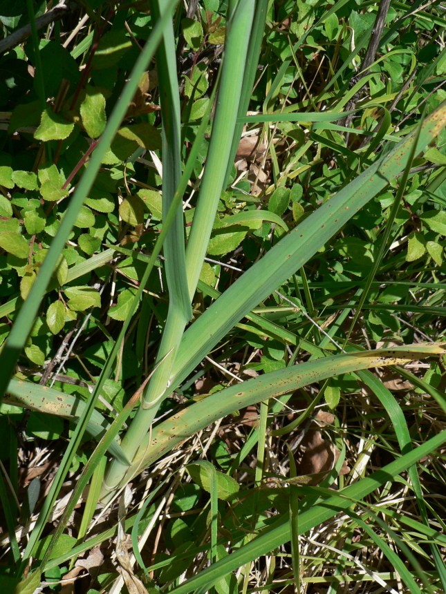 Cima delle foglie di uno dei primi  butti centrali; i successivi hanno foglie quasi lineari; tali butti centrali iniziano in un punto del ramo (nodo) con l’apertura di una guaina da cui appare una gemma (vedere foto)
