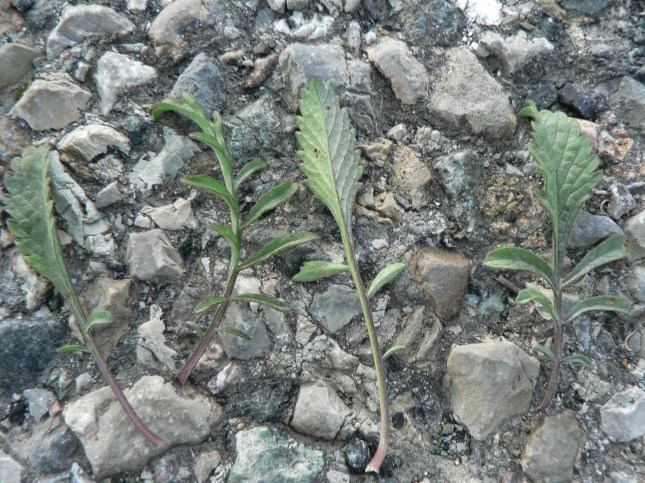Insieme alla rosetta forse di Borago officinalis (?), in basso di notano foglie di malva, a destra in alto si intravede la Mercurella e più al centro un ciuffo  un po’ sbiadito di Ballota nigra (Marrubio fedido)…..ed altro