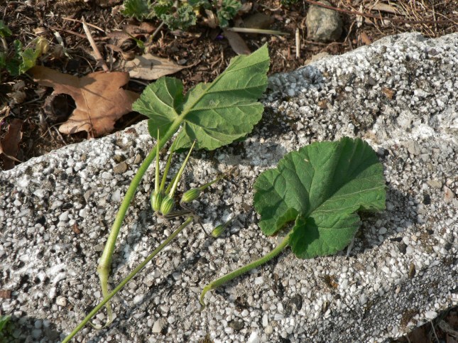 Probabile rosetta basale con foglie a cuore tendenzialmente triangolari astate forse di Lunaria annua o rediviva insieme in alto con la Mercurella circondata da una specie di ‘liana’ strisciante…ed altro. Se sviluppa vedremo.
