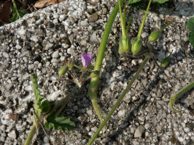 1. Erodium malacoides……o forse alnifolium. Questa pianta è visibile all’inizio della strada, nell’angolo dx dell’incrocio Vicinale S. Anna e Via Filosofi.