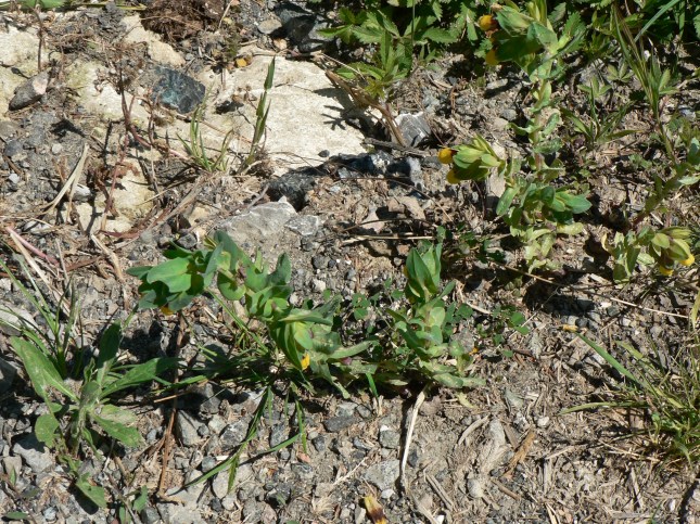 Erba Querciola (Camedrio); si intravedono vecchie piantine con semi sul calcare conchigliare del Pliocene medio dell’argine subito dopo il bivio per il P. San Pietro