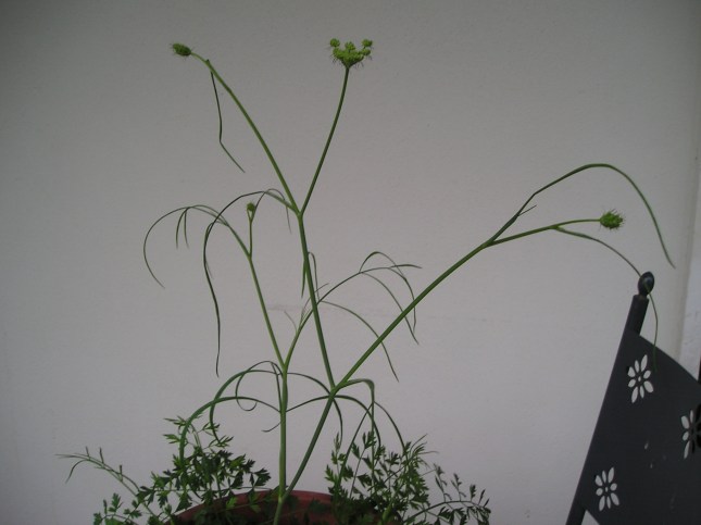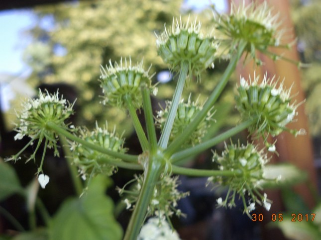 Oggi 23 Aprile 2017 la piantina precedente ha fatto tre gemme, sui cauli centrali, con  fiori abbozzati (forse) ad infiorescenza  ombrellifera come avevamo previsto.