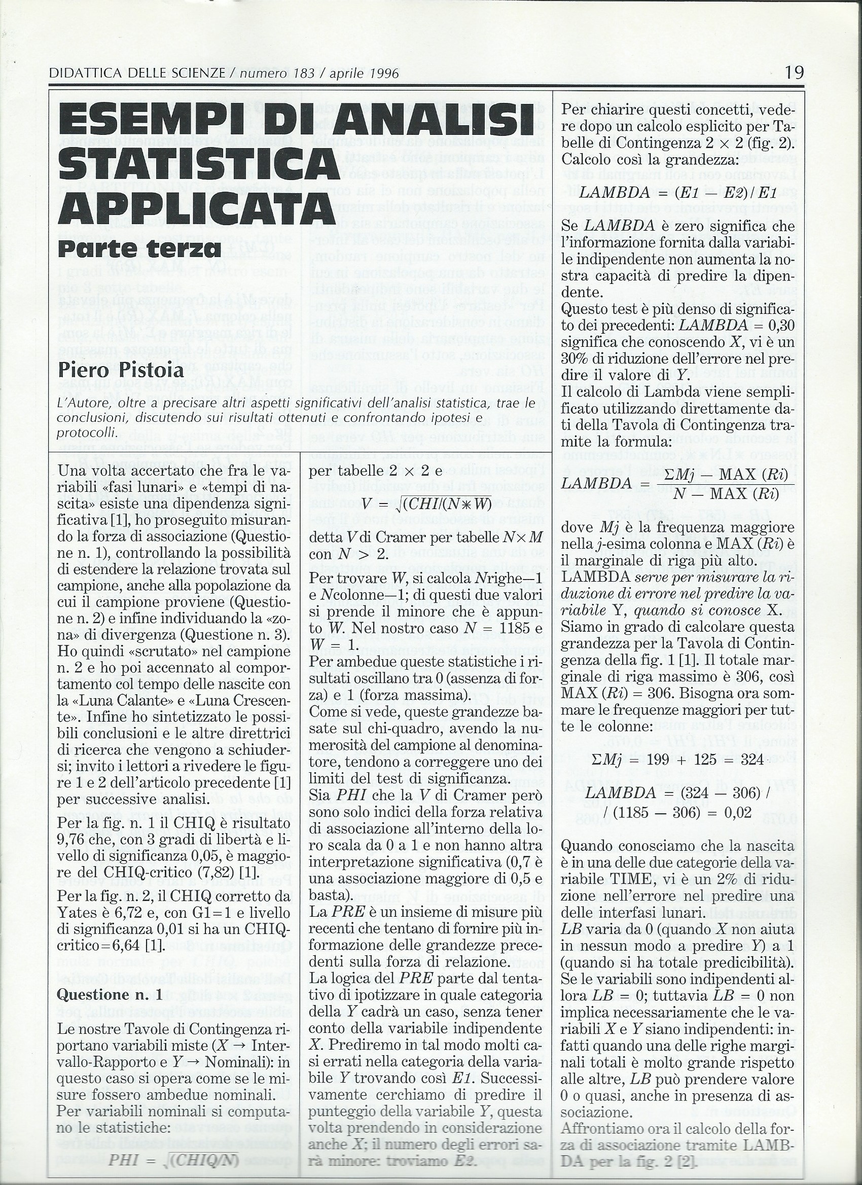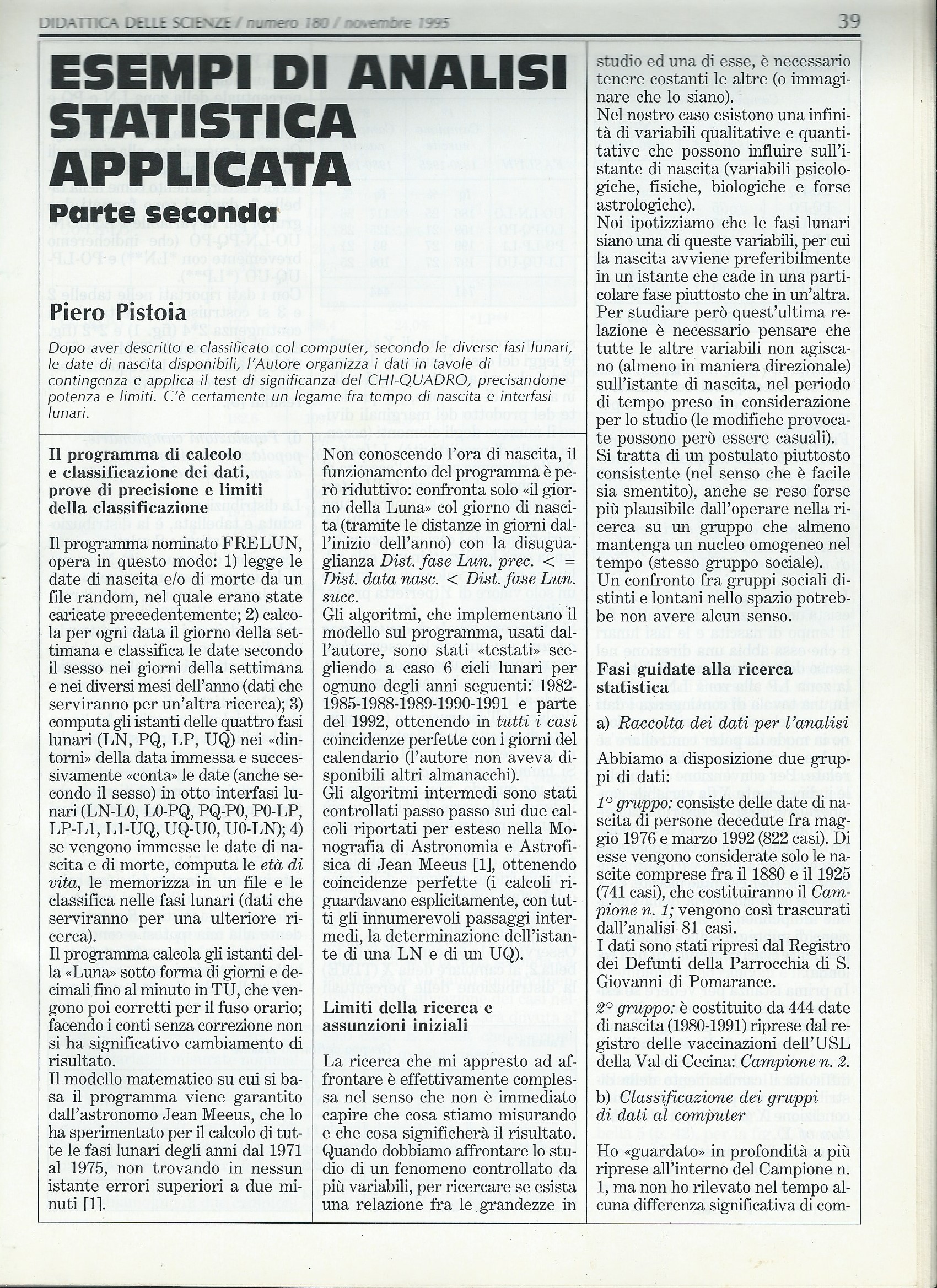 Fasi guidate e TROUBLE del ricercatore che ‘tenta di guardare’ all’interno di un oggetto complesso, per ‘sbrogliare’ la matassa di un migliaio di dati relativi alle date di nascita e di morte in Val di Cecina, da classificare secondo vari criteri, onde trovare correlazioni, per es., con le fasi lunari, i sette giorni della settimana, i dodici mesi dell’anno, maschi e femmine…., attraverso ipotesi di lavoro successive.